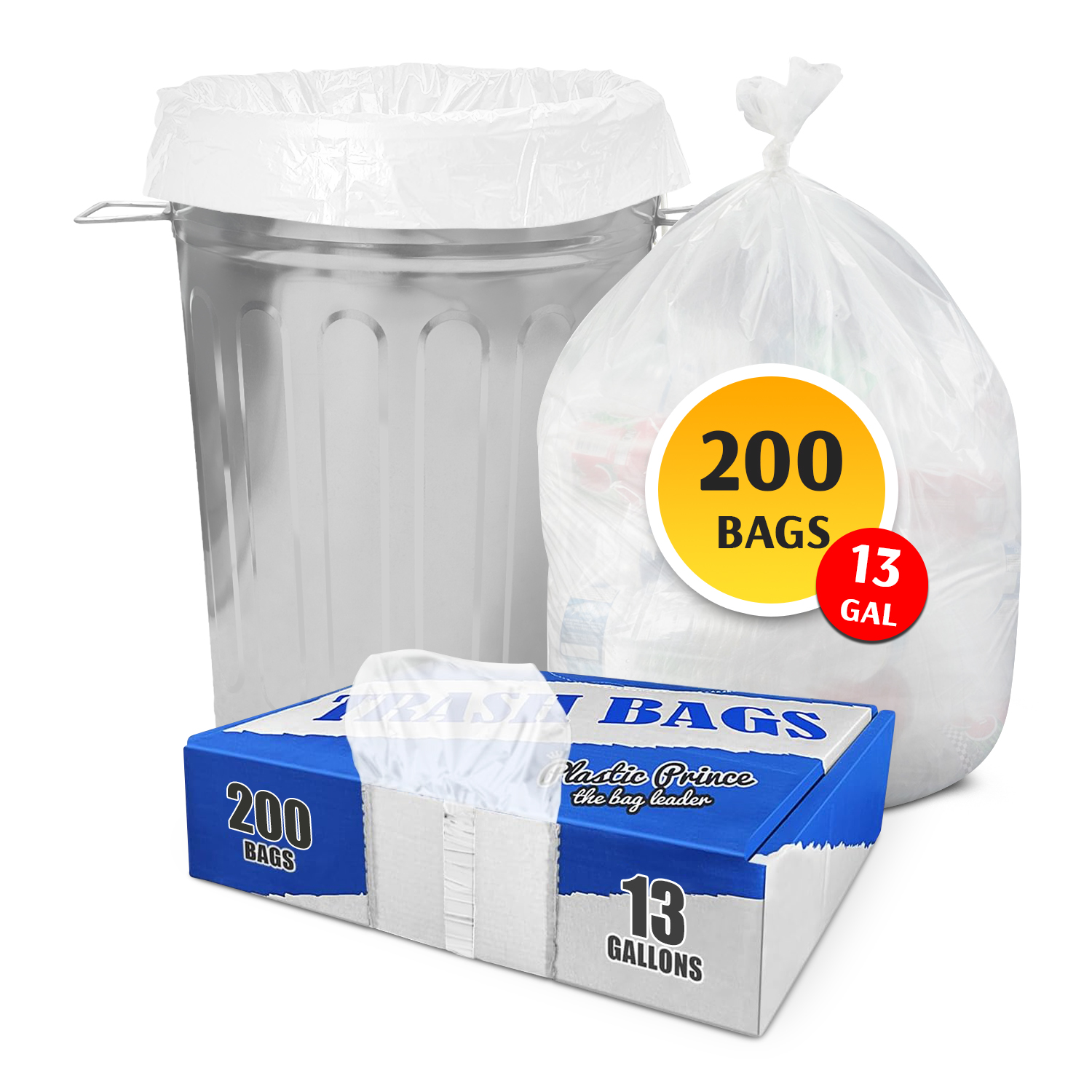 Introducing Plastic Prince's Heavy Duty Kitchen Bags: 15" x 9" x 31", holding 13 gallons and crafted from robust linear low-density material. These white trash bags offer unparalleled strength and resilience for any disposal task. Conveniently flat-packed for effortless dispensing, they're the perfect solution for efficient waste management in any home or business. Each case contains 200 bags, ensuring a reliable supply for all your cleanup needs.