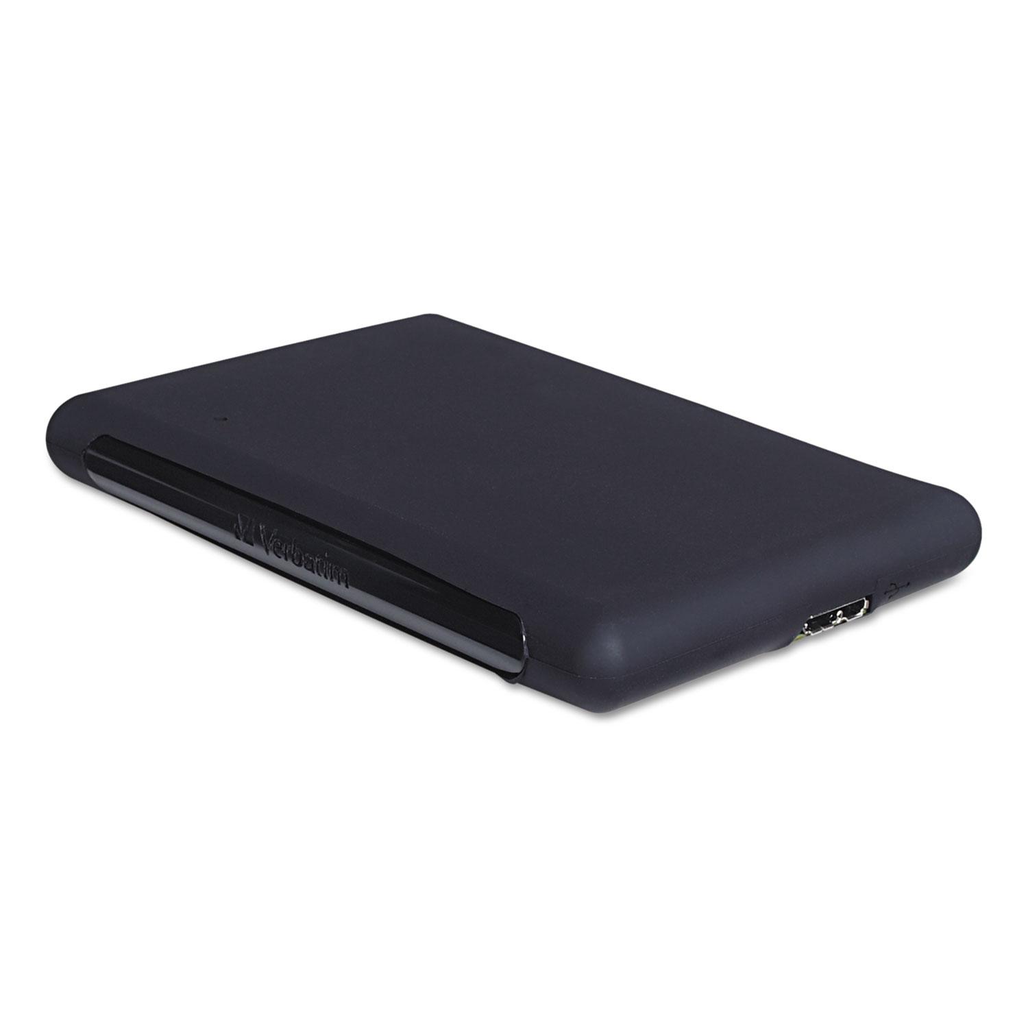 The Verbatim Titan XS, the smallest portable hard drive in the industry, now joins forces with SuperSpeed USB 3.0-the fastest connectivity in the industry! This rugged and sporty drive offers a shock-resistant rubber enclosure that protects against rough-and-tumble use. Also, the Titan XS SuperSpeed USB 3.0 drive features transfer speeds up to 10 times faster and is backwardly compatible with USB 2.0. The Titan XS USB 3.0 is big on storage with 500GB, 750GB and 1TB capacities. The Titan XS USB 3.0 hard drive boasts Nero BackItUp & Burn software with full system backup and restore. As always, Verbatim stands behind the quality of our products with a 7-year limited warranty. Small and light; size: 112 mm x 79 mm x 15 mm; lightweight: 156 grams Outfitted with a shock-resistant rubber casing 1TB high-capacity storage lets you store large multimedia files-movies, HD video, games, photos and more Windows and Mac compatible Includes Nero BackItUp & Burn software Backed by a 7-year limited warranty Software compatible with Windows operating systems only What's in the Box: 1 Titan Hard Drive, a USB cable, Turbo USB software, Nero BackItUp & Burn Essentials software, Quickstart Guide and quick link to Norton Online Backup