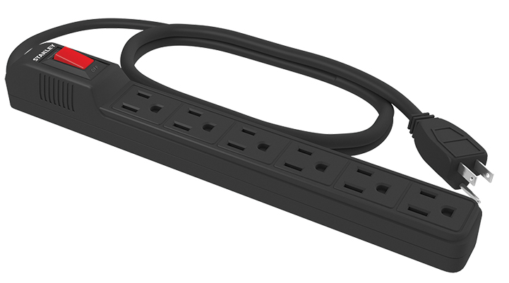 30007 PowerMax 6 Black 6-Outlet Power Strip with 3' Cord AWG 14/3 SJT