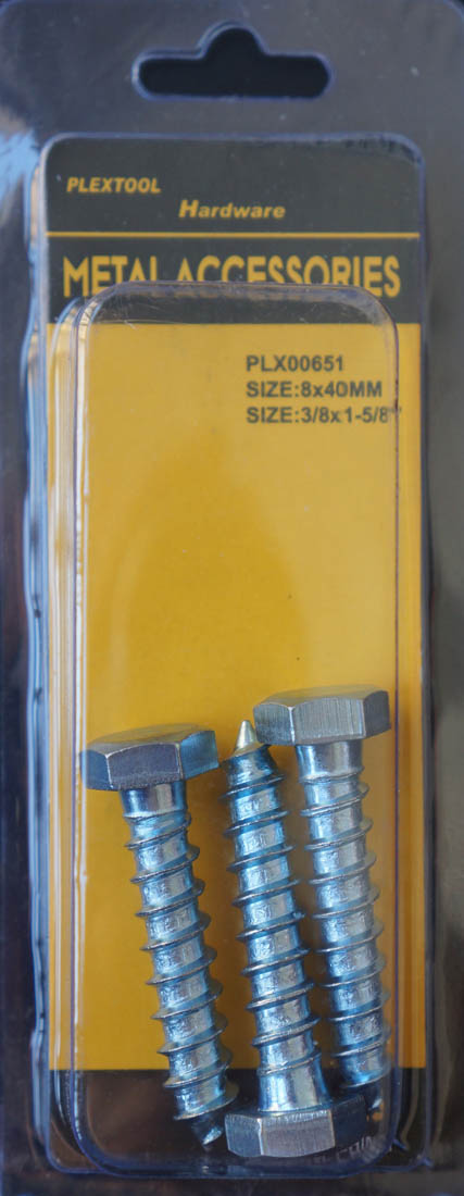 3/8" x 1-5/8" Hexagon Head Screws Bolts, 3/Pack, 24/Case
