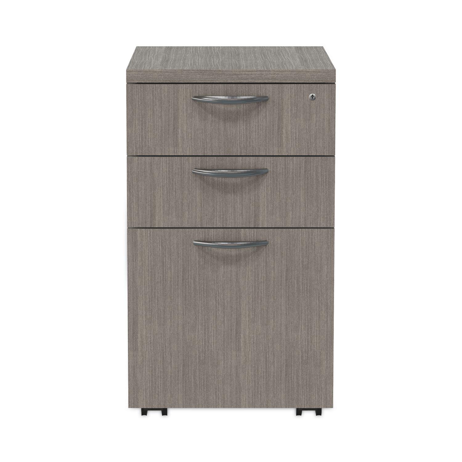 Mobile file cabinet is ready to go anywhere you need it to go. Full-extension ball bearing slides on file drawer for easy access to files. The drawers lock for securing contents. Durable 3 mm edge banding protects against bumps and dings. Five casters, two locking. Center caster prevents tipping. Fully assembled, just attach casters. Two, fold-away keys which provide a slimmer profile are included. Drawer Quantity: 3; Drawer Configuration: Box/Box/File; Anti-Tip Mechanism Indicator: Yes; Anti-Tip Mechanism: Fifth Wheel.