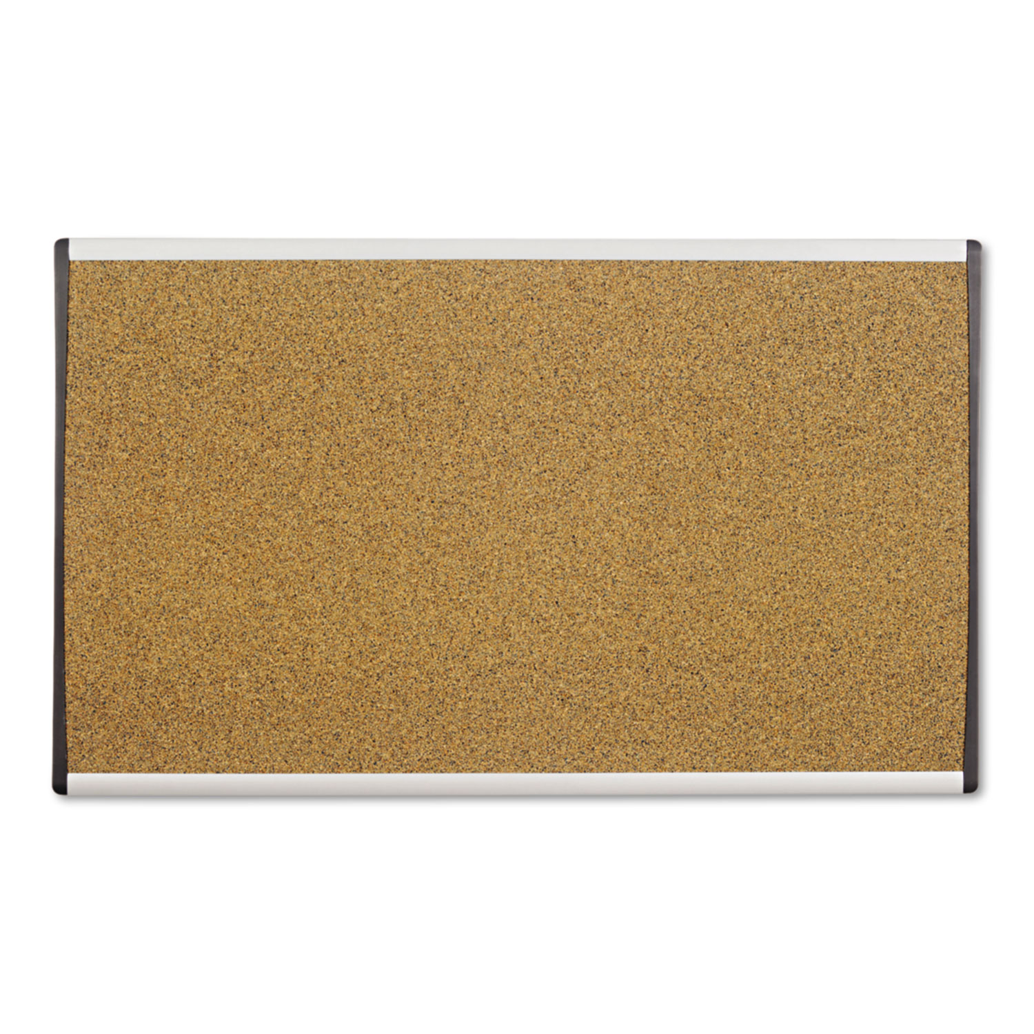 Durable, high-quality board helps delivers quality planning and organizing performance in personal workstations. The stylish aluminum finish frame compliments any contemporary cubicle decor. Flexible mounting system secures dry-wall and hangs with pins for cubicle mounts. Cork BoardSelf-healing graphite-blend cork surface hides pinholes and blemishes and provides a lasting durable surface. Board Type: Bulletin; Board Width: 30"; Board Height: 18"; Surface Material: Cork.