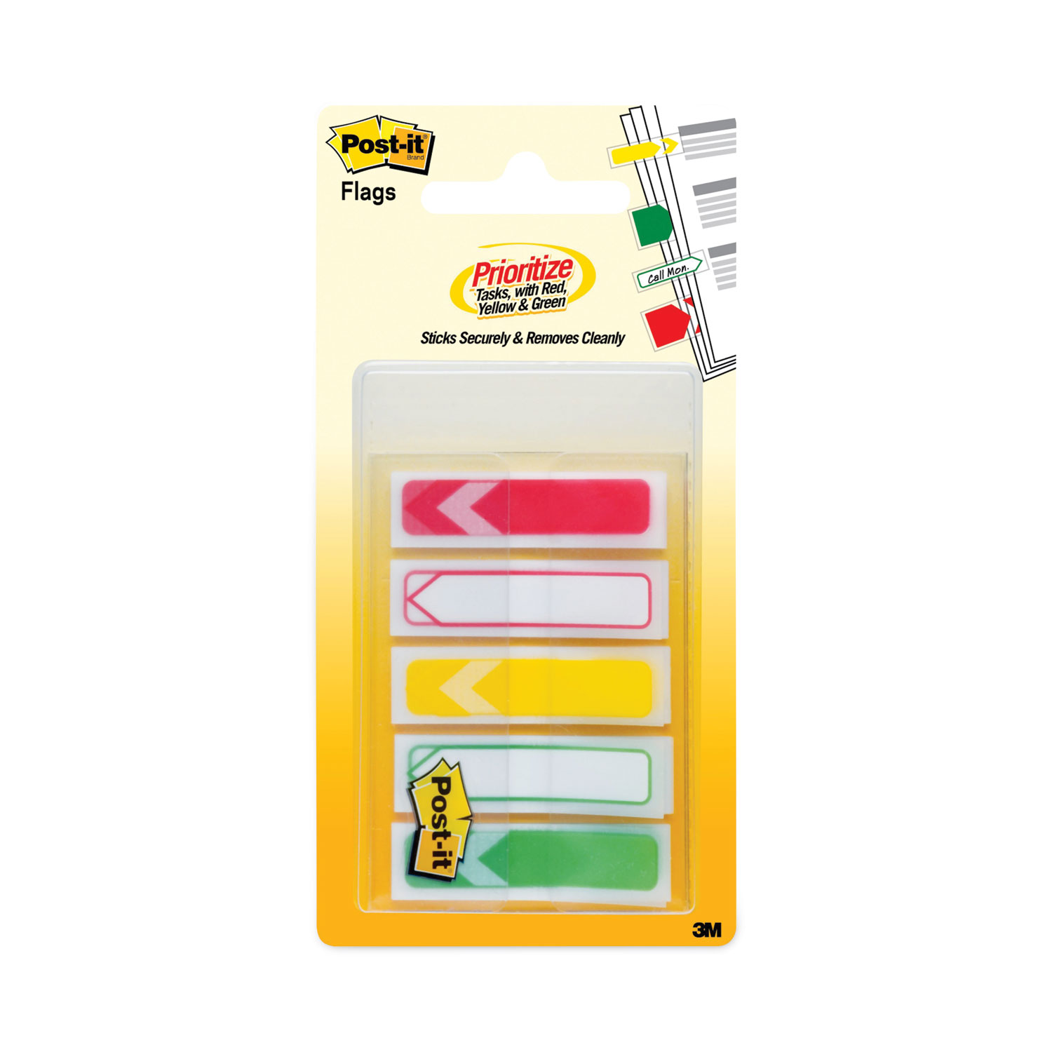 Find it fast with Post-it Flags. They make it simple to mark, flag or highlight important information. They stick securely, remove cleanly and come in a wide variety of colors. Draw attention to critical items or use them to index, file or color code your work, either at home, work or in the classroom. Prioritization FlagsVisually organize using red, yellow and green. Color(s): Assorted Primary; Color Family: Multicolor; Dispenser: Pop-Up; Assortment: Green; Red; Yellow.