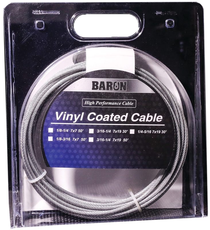BARON 50215/50215 Aircraft Cable, 1/8 to 3/16 in Dia, 100 ft L, 340 lb Working Load, Galvanized Stee