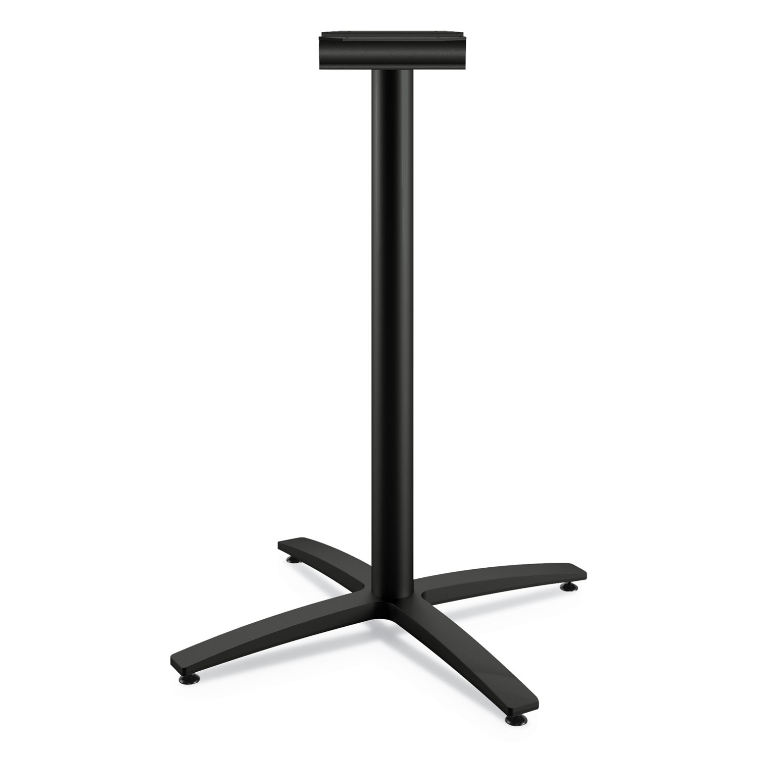 Support a productive standing height work environment. The lightweight base makes movement throughout your space a breeze. Easily attach solid steel brackets to a between table top using pre-drilled holes. Cast aluminum base is available in platinum or black to match any aesthetic. Leveling glides adjust up to 3/4" to compensate for uneven floors. For 42" Table Tops. Color Family: Black; Base Color: Black; Overall Width: 32.68"; Height Maximum: 41.12".