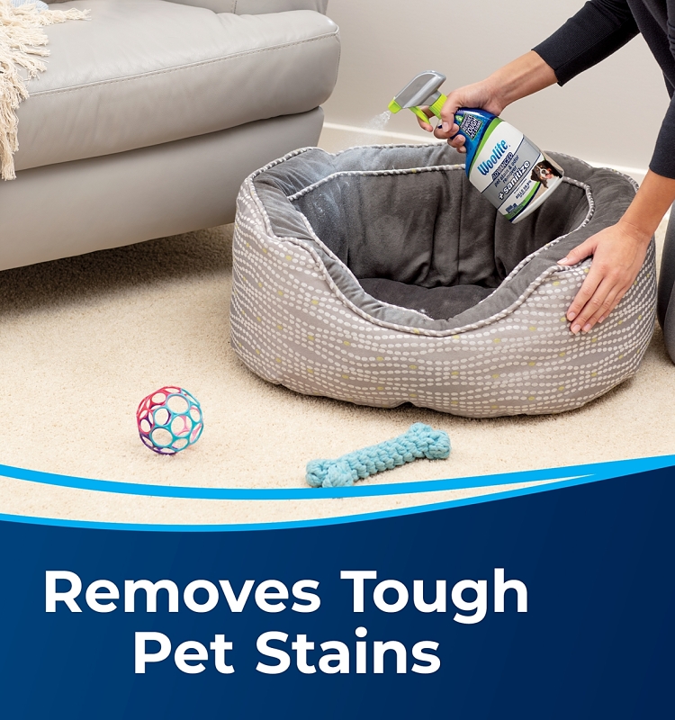 BISSELL Woolite Pet Stain and Odor Remover, Liquid Form, Clear, Characteristic Odor/Scent, 22 oz Net Content, Compositions: Hydrogen Peroxide, 0 % VOC, 212 deg F Flash Point, 212 deg F Boiling Point, 2.5 to 3.5 pH, 1 Specific Gravity