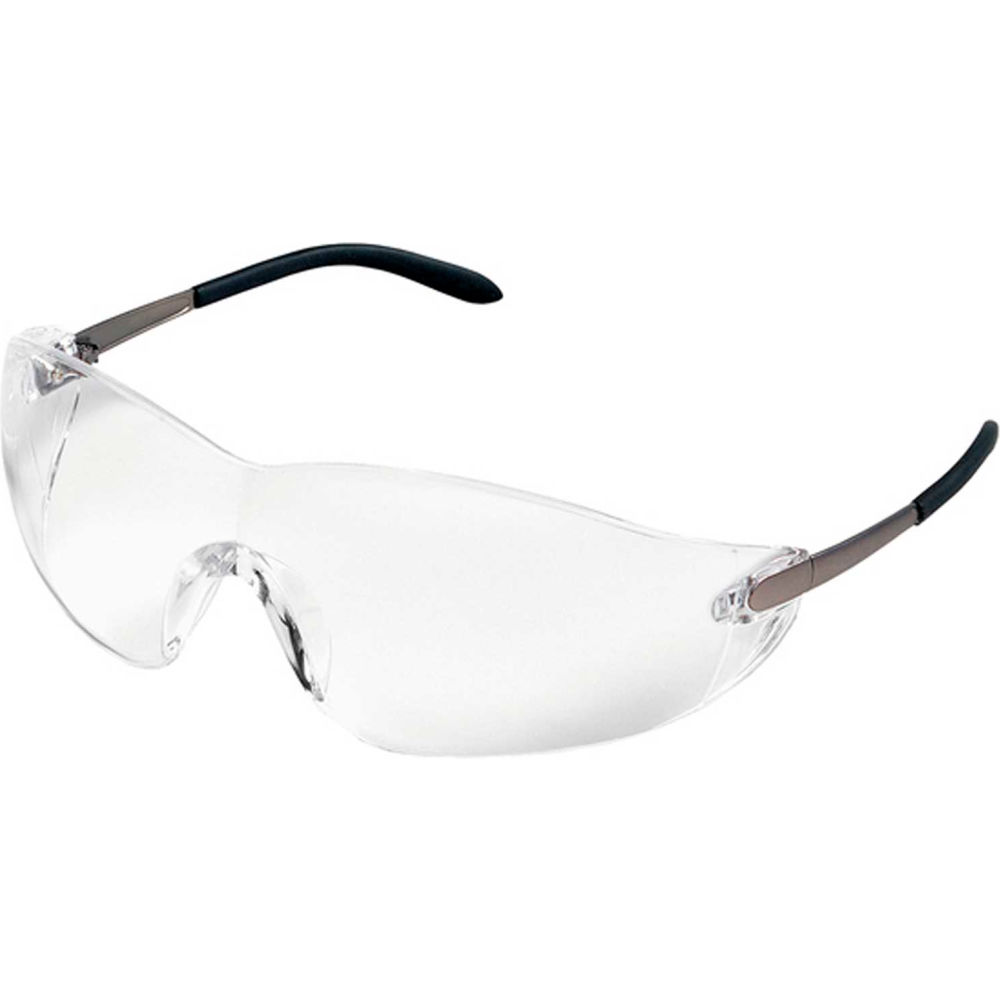 You won't have to sacrifice style for safety with these glasses. The single wraparound lens comes with integral side shields with a sleek style and extra protection. Lenses are treated with Duramass scratch-resistant coating and capable of resisting 99.9% of UV rays. Bayonet temple and nonslip rubber head grips offer a comfortable fit-great for those long hours. Style: Wraparound; Frame Color: Chrome; Frame Material: Plastic; Lens Material: Polycarbonate.