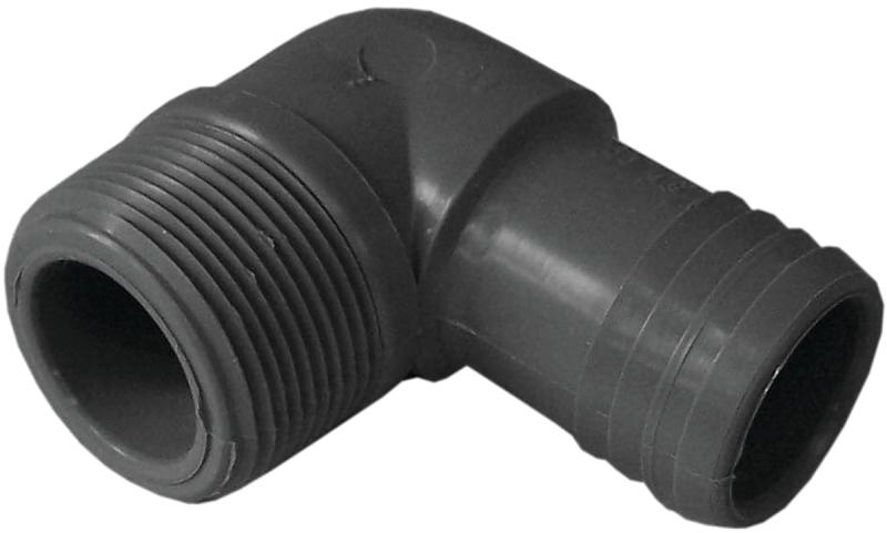 Boshart Combination Elbow, Nominal Size 1: 1-1/2 in, Nominal Size 2: 1-1/24 in, Connection Type 1: MPT, Connection Type 2: Insert, Polypropylene, Gray