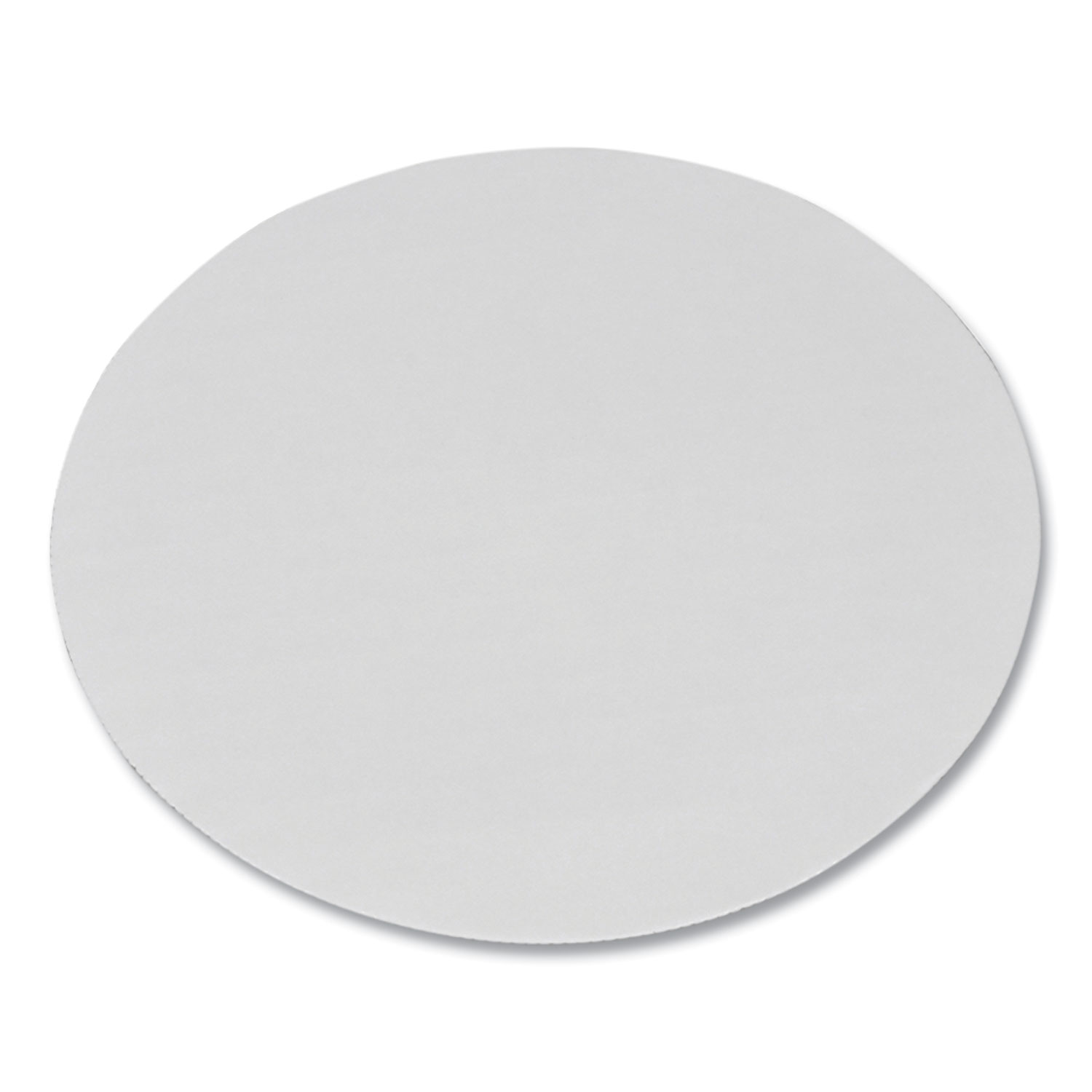 Made from strong fluted corrugated material. White coating provides moisture and grease barrier. Smooth edge and bright white color give a clean, professional presentation of decorated cakes. Food Container Type: Cake Circle; Material(s): Corrugated Cardboard; Food Container Material Type: Paper; Color(s): White.