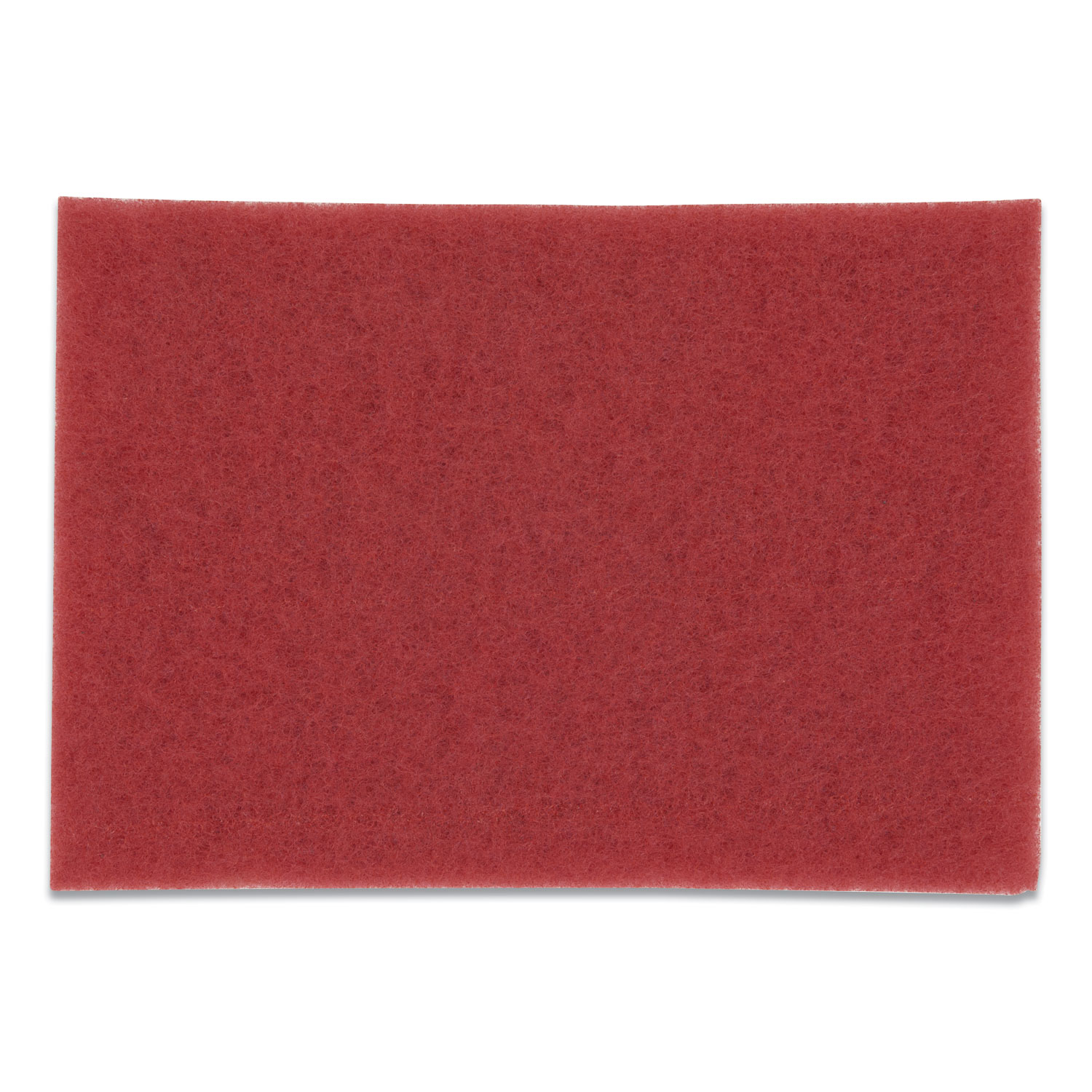 3M Red Buffer Pads 5100 can be used for everyday cleaning, remove light soil, scuff marks and black heel marks. Its regular use reduces the frequency of scrub-and-recoat operations, enhancing the appearance of your finished floors with reduced labor and materials costs. Fibers throughout the pad are uniformly coated with a high-quality resin and fine cleaning particles, providing good performance throughout the pad's long life. Open-web construction means this washable, reusable pad resists clogging and loading. Conformable fibers provide maximum pad-to-floor contact. Pads are reversible. For rotary swing machines and automatic floor machines running at low speed (175-600 rpm). Application: Buffing; Height: 14"; Width: 20"; Color(s): Red.