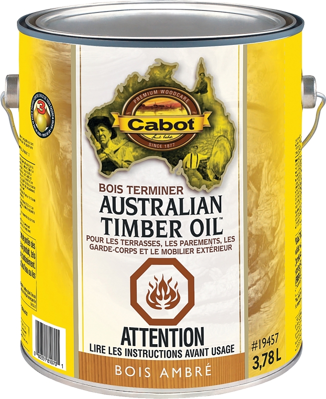 Cabot Australian timber oil for decks, siding, railings and outdoor furniture is a unique blend of oils originally formulated to protect dense tallow wood, cambara and merbau from the extreme Australian exposures. Australian timber oil penetrates deep into the dense, resin rich woods to accentuate natural wood depth and patina. Containing a precise blend of superb-grade linseed oil for maximum penetration, long oil alkyds for durability and pure South American Tung oil for color depth and water repellency, Australian timber oil delivers three way oil protection and a beautiful hardwood stain. In addition, complex translucent iron oxide pigments are added to ensure a lasting UV absorbing surface rich with color and dimension. The result after years of development is an advanced technology treatment of unrivaled performance designed to protect your exotic wood surfaces like never before.