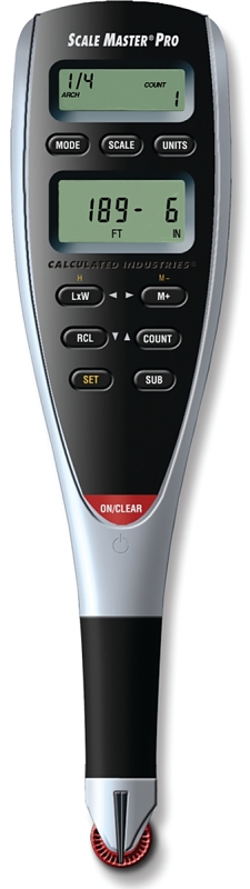 Specifically designed to simplify takeoffs from architectural and engineering drawings, the scale master pro finds linear measurements of any shape as well as rectangular areas and volumes and it converts between scales and dimensions. It comes with 72 built-in scales (39 US and 33 metric for maximum versatility). It also features six custom scales (three each for US and metric units), enabling you to define any scale, even from plans that have been reduced, enlarged or are just out of scale. You can easily store the new scale permanently into the device for future use. Other features include two built-in memories, dedicated length, width and height keys; push-button counter to keep track of items while rolling; switch for locking in mode, scale and units while rolling; and a subtract key that allows you to deduct rolled distances. Easy to learn and use, the Scale Master Pro will save you time and reduce errors on your estimates and bids.