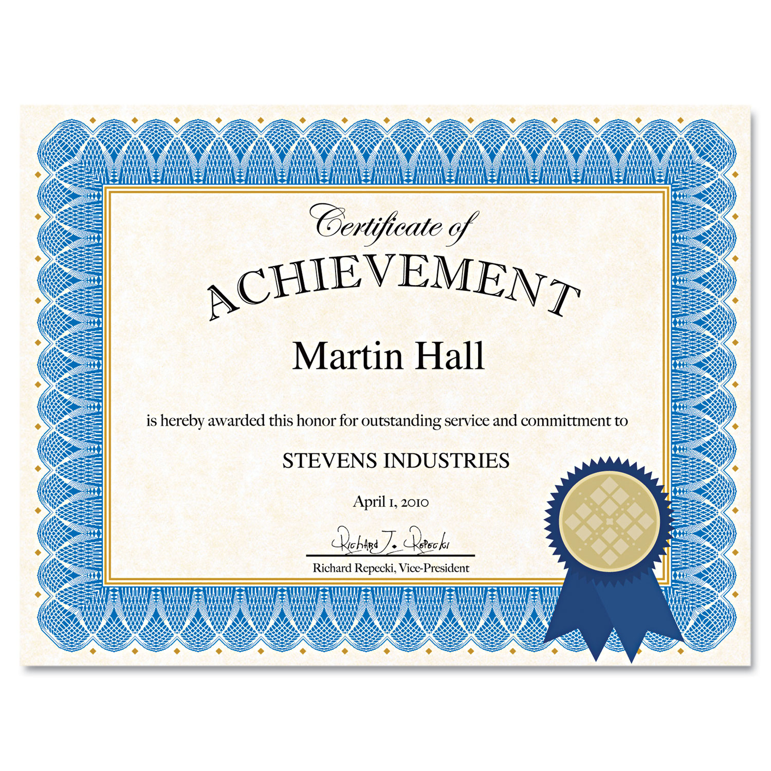 Includes everything you need to create up to 25 finished award certificates, complete with foil seals and blue ribbons. Easy to format and print using any inkjet or laser printer. Theme: Spiral; Shape: Rectangular; Width: 8 1/2"; Height: 11".