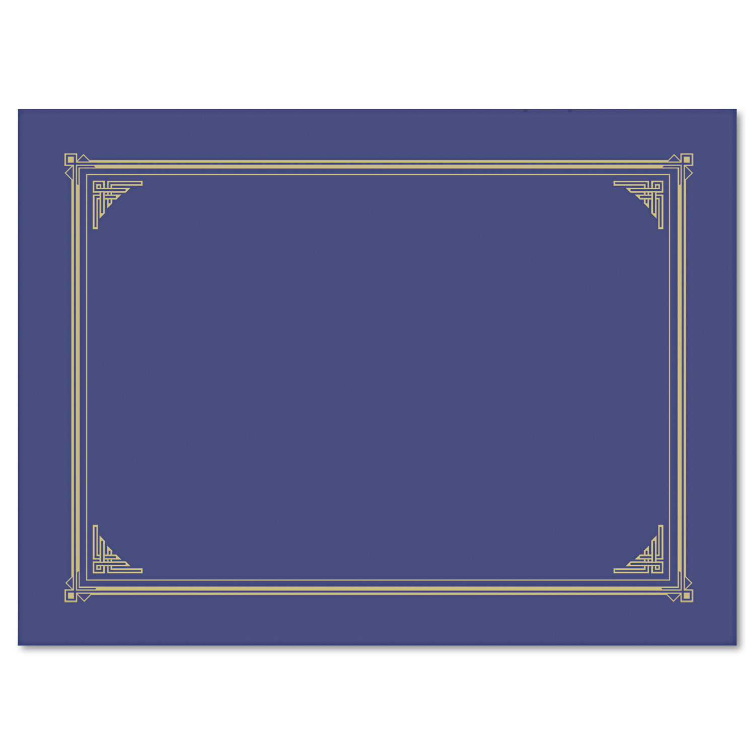 The perfect way to hold and frame precious documents and certificates. Premium 80-lb. linen textured cover stock with elegant gold-foil design adds a touch of elegance to any important paper. Easy to useslip the full-size certificate into die cut to hold 8 x 11 certificates, or A4 and 8 x 10 photos and documents. Also great as photo holders, invitation folders, menus and more. Measures 12 1/2 x 9 3/4. Color(s): Blue Metallic; Width: 12.5"; Height: 9.75"; Insert Size: Assorted.