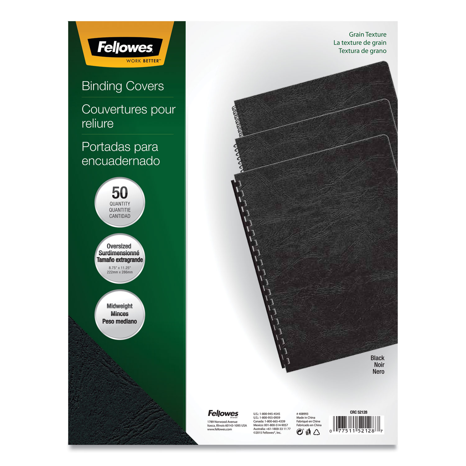 High-quality 60-lb. covers with classic grain texture add a professional look and feel to any document. Adaptable to any binding system (except thermal). Round Corners. Back Cover Color(s): Black; Front Cover Color(s): Black; Size: 11.25 x 8.75; Material(s): 60 lb. Paper Stock.