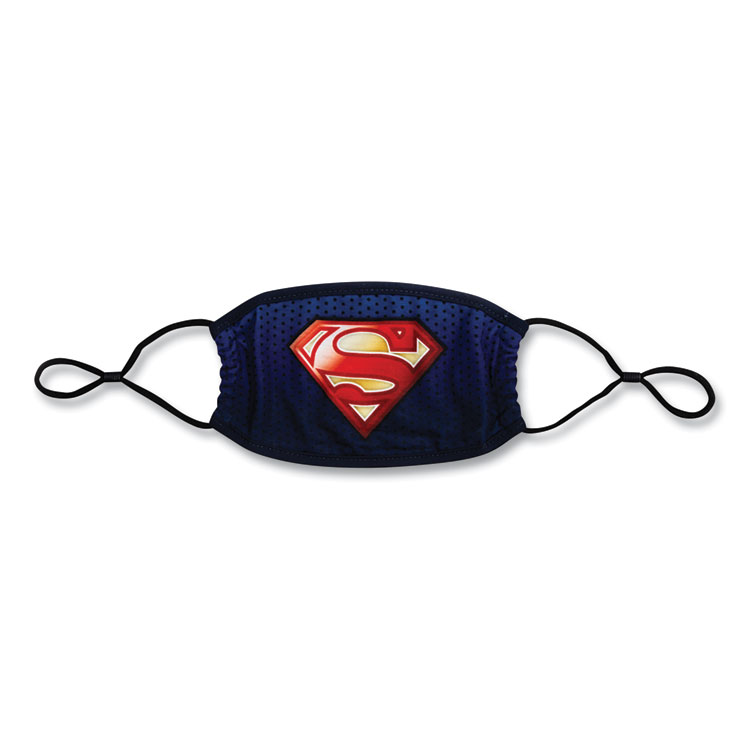 Keep covered in style. Adjustable ear straps for added comfort. Comfortable cotton lining. Superman Logo Print. Material(s): Cotton; Polyester; Spandex; Size Group: Adult.