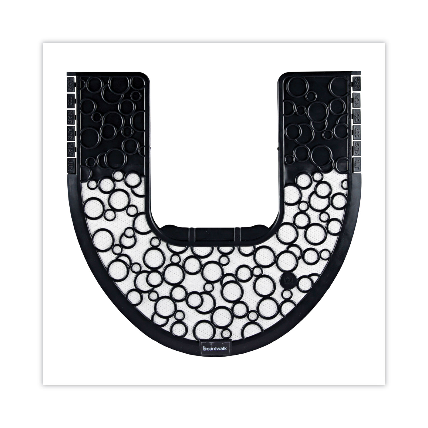 Unique and trendy design provides an upscale look to catch and neutralize urine splatters. It's perfect for unisex bathrooms and men's rooms without urinals. It absorbs and neutralizes twice as much urine as other mats, and has a non-slip tacky bottom layer that seals the urine in and protects floors. Every mat is embedded with NeutraTech, a mold inhibitor and specially designed odor counteractant for urine. Mat Type: Commode Mat; Application: Restroom Floor Mat; Width: 22.88"; Length: 22".