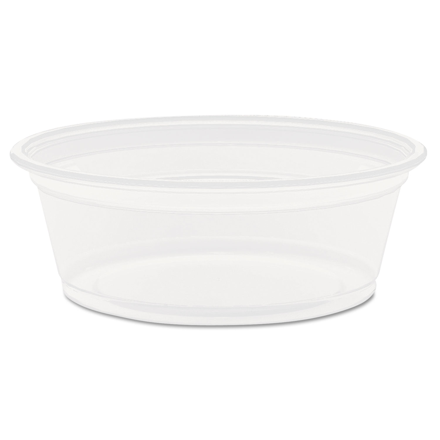 Easily distribute food and beverage samples, filled-to-order condiments as well as liquid- or pill-form meds. Handy containers provide the perfect portion for any purpose. Made of crack-resistant polypropylene, they're ideal for many dining-, carryout- and medical-service applications. Cup Type: Portion; Capacity (Volume): 1.5 oz; Material(s): Polypropylene; Color(s): Translucent.
