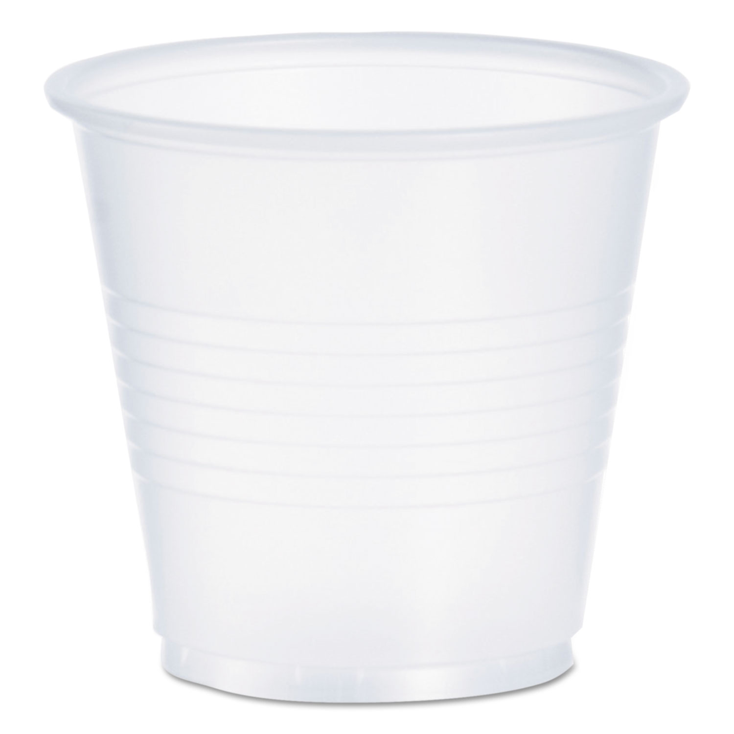 Perfect for any occasion where cold beverages are being served. Double sidewall ridges for added strength. Crack-resistant design helps avoid spills. Translucency allows for better drink identification. Cup Type: Cold; Capacity (Volume): 3.5 oz; Material(s): Plastic; Color(s): Translucent.