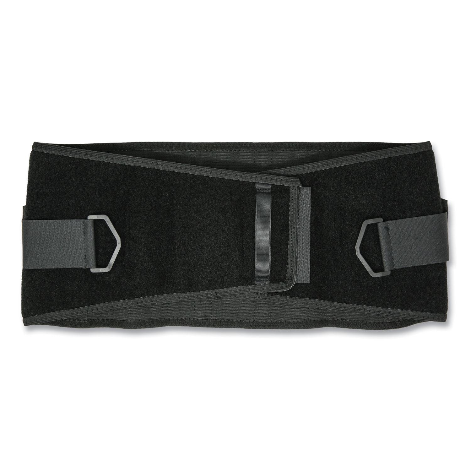Provides compression to help stabilize the spine and ease lower back pain by creating intra-abdominal pressure. An internal suspender holds this support in position and does not present a hazard around machinery or equipment like over the shoulder suspenders. Helps improve posture and serves as a reminder to use proper lifting techniques by limiting the motion of muscles and ligaments. Patented, proportional sizing system ensures a proper fit in height and length to accommodate various body sizes. When ready to lift or use lumbosacral muscles, simply place hands through closure assists, tighten, and secure. Easy closure assists provide additional leverage with minimal effort for extra compression and a secure fit. Ideal for users with arthritis or weakened muscles. Elastic side pulls with convenient thumb loops allow extra compression for desired support. Flexible internal stays offer support and stability as well as help prevent the sides from rolling. Soft elastic CorEdge finish on top and bottom edges offers added comfort and flexibility. Moisture wicking material keeps the body cool and comfortable. The anatomical form contours to the natural curves of the waist and hips for comfort. General Category: Work/Safety Gear; Sub-Category: Flexible Brace; Work Belt; Color(s): Black; Color Family: Black.