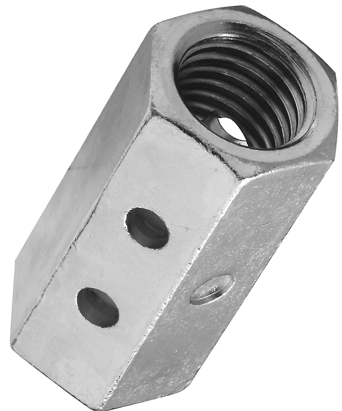 Larger couplers come with witness holes to confirm rods are threaded together completely