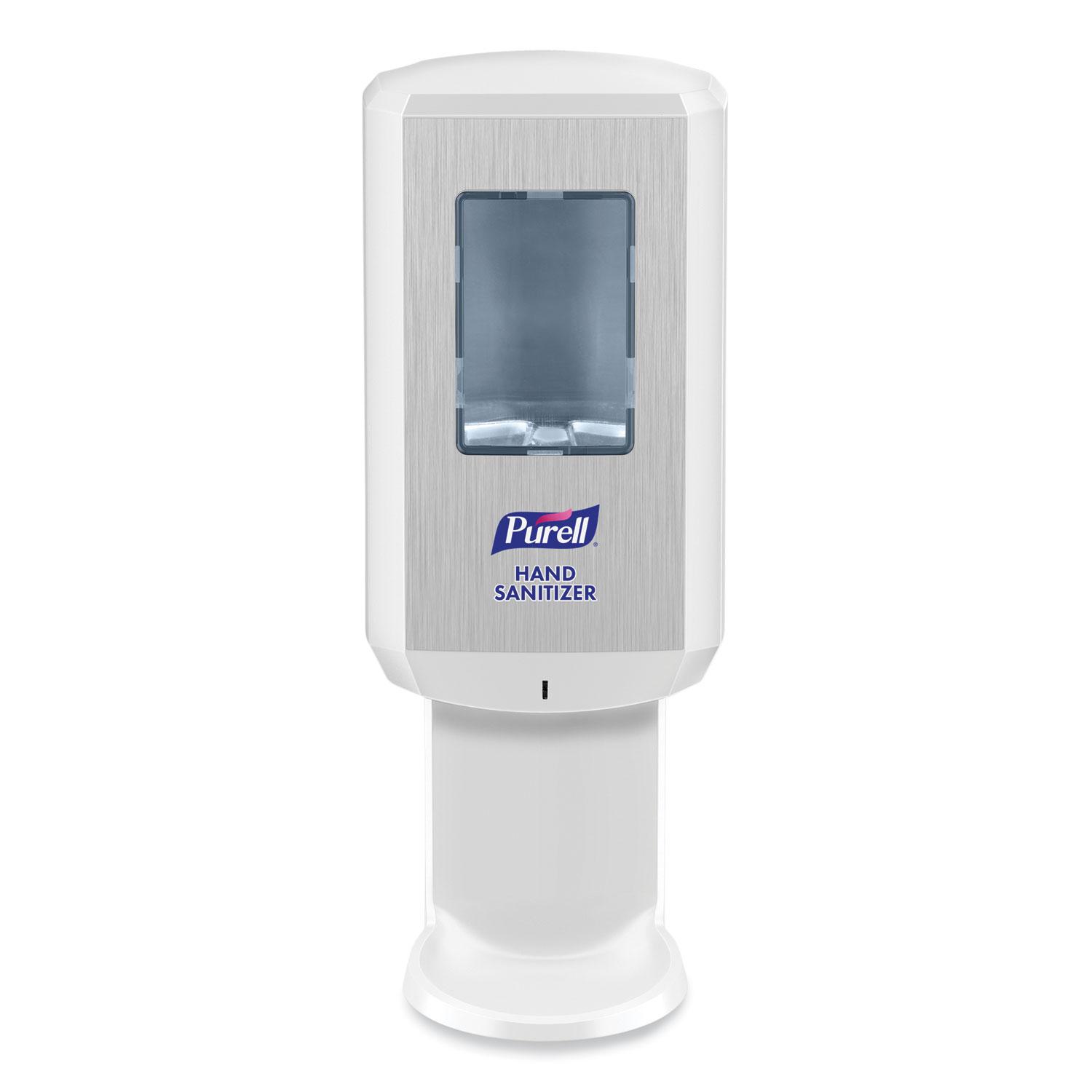 Show you care about well-being with the PURELL CS6 Touch-Free Hand Sanitizer Dispenser. This touch-free dispenser is perfect for placement in high-traffic areas and is calibrated to provide the optimal dose for effective hand hygiene. Research shows that 80 percent of people said seeing PURELL products left them with a positive overall impression. The dispensers large sight window makes it easy to check refills, and it requires no tools to change batteries. Mount it to the wall with adhesive tape (included) or with screws (not included). Its ADA compliant and works with PURELL CS6 1200 mL hand sanitizer refills (sold separately). Mounting: Wall; Holds: 1,200 mL; Material(s): Plastic; Color(s): White.