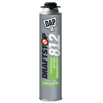 DRAFTSTOP 812 Low-pressure/non-rigid polyurethane foam is available in 26 oz gun grade and 16 oz Stop N' Store straw grade canisters. DRAFTSTOP 812 is low-pressure single-component polyurethane foam designed to fill gaps between fenestration products and rough openings. It will provide an air-tight seal and protect against water, air and sound intrusion. The non-rigid, highly elastic foam has 30% joint movement capability which accommodates movement and settlement to maintain an air-tight, weatherproof seal. It is closed cell, minimal expanding foam which will not absorb water, warp or deflect window or door frames.