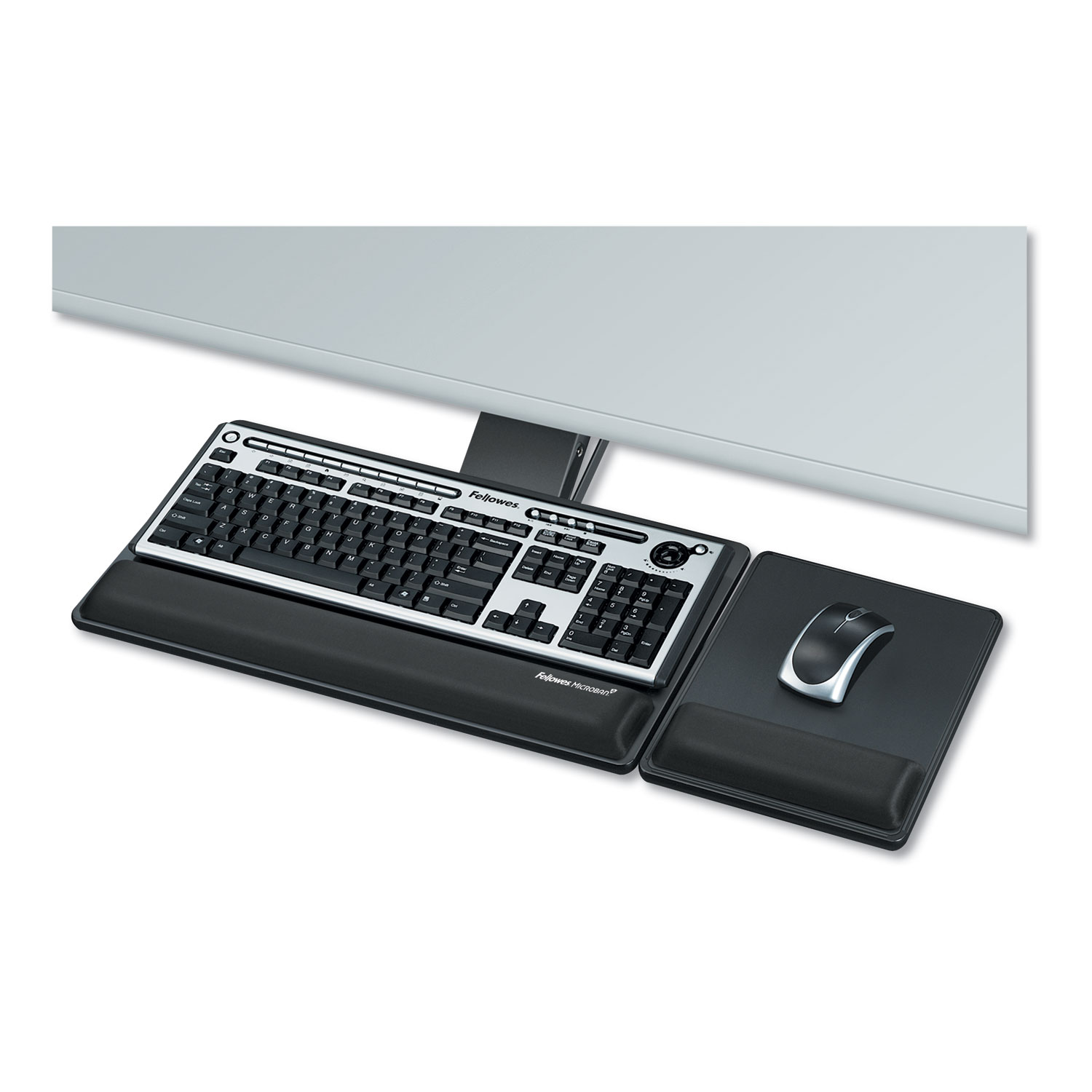 I bought this to replace a cheap slide out keyboard tray that came with my HONS desk. something I should have done years ago. Fairly easy to install, but some sort of paper template of the actual size would have been helpful in the placement of the tray for installation since the tray has an asymmetrical mount due to the mouse tray being mounted on the left or right. Construction is top notch. Fits a Microsoft Sculpt Comfort (ergonomic) Keyboard with ease. The wrist rests are optional. My only complaint is the mouse tray is a little bouncy since it is so far off of center in relation to the mount. Overall, a good value for the money.