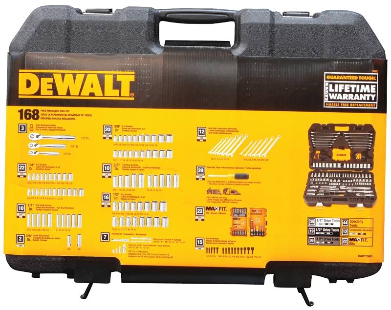The set includes three pear head ratchets and a variety of sockets, extensions, universal joints and adapters. The sockets and wrenches include DirectTorque technology to help prevent rounding of fasteners and to provide better grip.