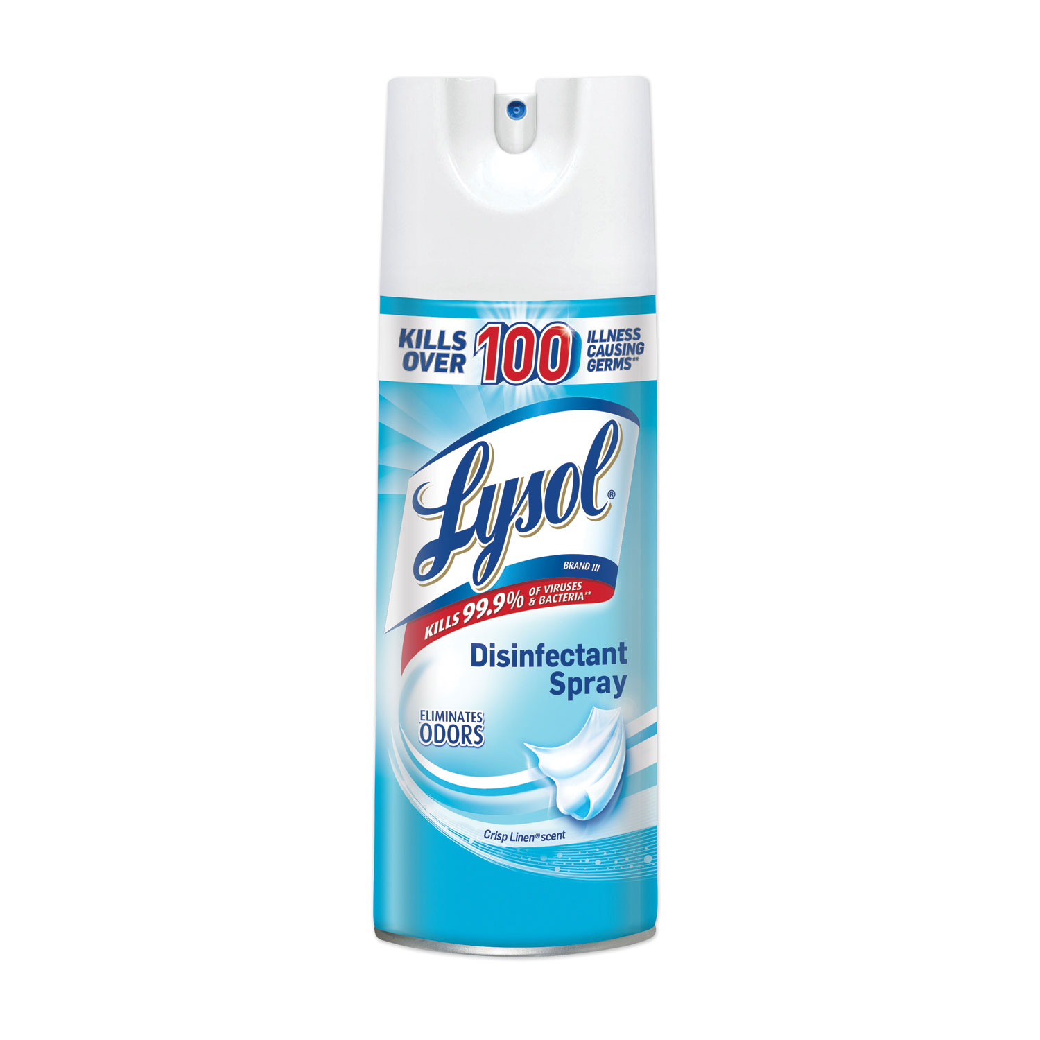 Get maximum versatility with minimal effort with Lysol Disinfectant Spray thats safe to use on hard and soft surfaces. Lysol kills 99.9% of viruses and bacteria, including the virus that causes COVID-19 in 15 seconds, as well as cold and flu viruses when used as directed. Help protect high-traffic areas and high-touch surfaces, including desks, bathrooms, doorknobs, and railings. Deliver hospital-type disinfection on to soft surfaces, including upholstery, curtains, sofas, mattresses, and cushions. Meet customer and staff expectations around disinfection. Simply spray and let air dry. Application: Disinfectant/Sanitizer; Applicable Material: Hard, Non-Porous Surfaces; Chemical Compound: Ethanol, Alkyl (50% C14, 40% C12, 10% C16) Dimethyl Benzyl Ammonium Saccharinate; Dirt Types: Bacteria; Fungus; Germs; Mildew; Mold; Viruses.