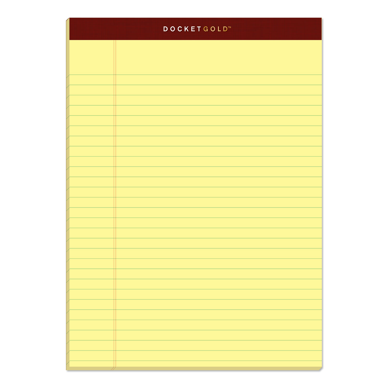 Docket Gold Writing Pads feature premium-weight paper for a smooth, pleasant writing experience that resists bleeding or show through. Durable binding permanently secures your pages. Letr-Trim perforated sheets detach cleanly as needed to keep your pad looking neat and professional. Extra-strong backing provides firm writing support. Book/Pad Binding Type: Double-Stitched; Book/Pad Binding Edge: Top; Book/Pad Sheet Size: 8.5 x 11.75; Book/Pad Subjects/Sections: 1.