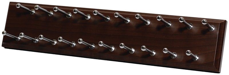 Keep ties tidy and put them away with ease with this versatile rack. Can be installed on the inside or outside of a vertical panel. Hold up to 20 ties or scarves. Instructions and hardware are included. Chrome hooks.