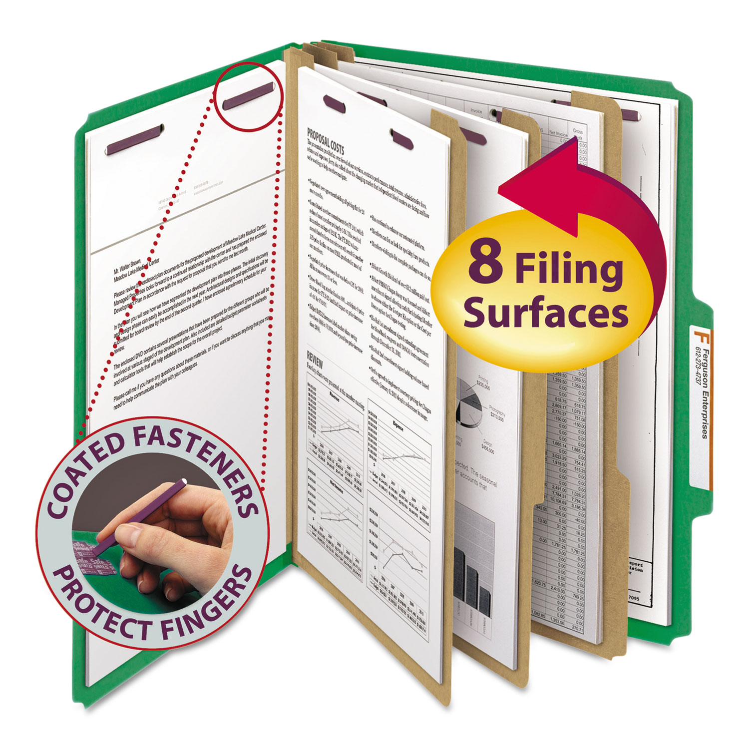 The ultimate classification folder when safety and security are most important. SafeSHIELD bonded fasteners add protection for papers and fingers, while also reducing fastener crinkling. Made of pressboard for extra durability. Variety of colors for color-coding projects. Folder Size: Letter; Total Number of Dividers: 3; Total Number of Fasteners: 8; Max Folder Expansion: 3".