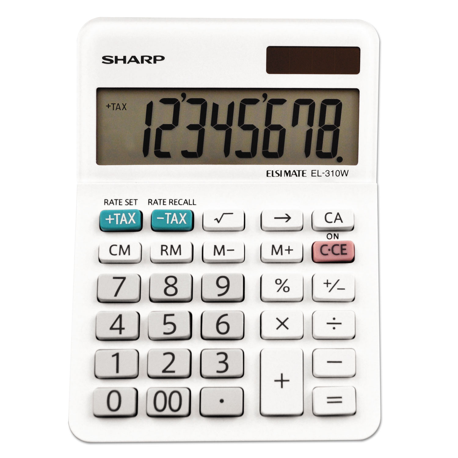 Eight-digit professional mini-desktop calculator. Features automatic tax keys, percent key, square root key, backspace key, and four-key independent memory. Operates on twin power. Power Source(s): Battery; Solar; Display Notation: Basic; Number of Display Digits: 8; Display Characters x Display Lines: 8 x 1.