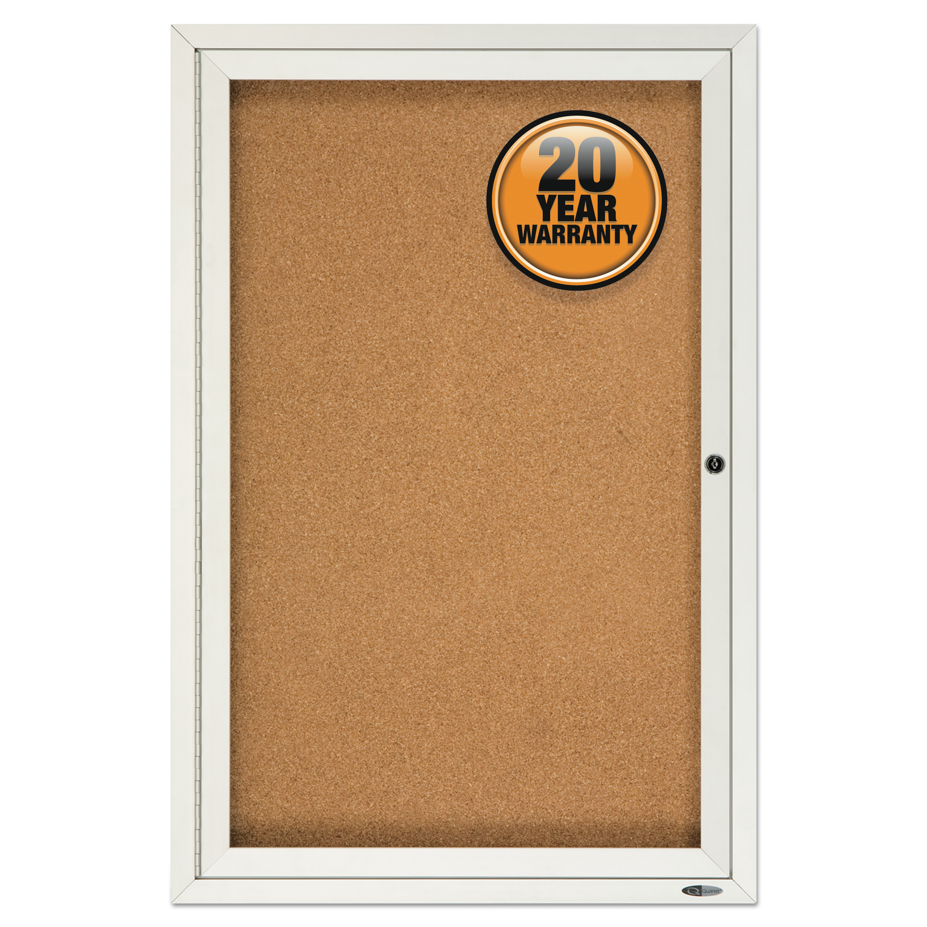 Communicate clearly and securely with Quartet Enclosed Indoor Cork Bulletin Boards. Minimize the risk of damage to important documents. Clear, acrylic windows ensure visibility for your message while locking doors secure documents in place. Information is easy to update and change. Thick self-healing natural cork holds push pins tightly and provides an excellent, resilient tacking surface. Each board has a dense fiberboard backing, sealed to reduce moisture absorption and resist warping. Full-length hinges. Ideal for indoor use. Available in a wide variety of frame finishes, designed to complement any office interior. Choose from one, two and three door models. Includes one key per lock.