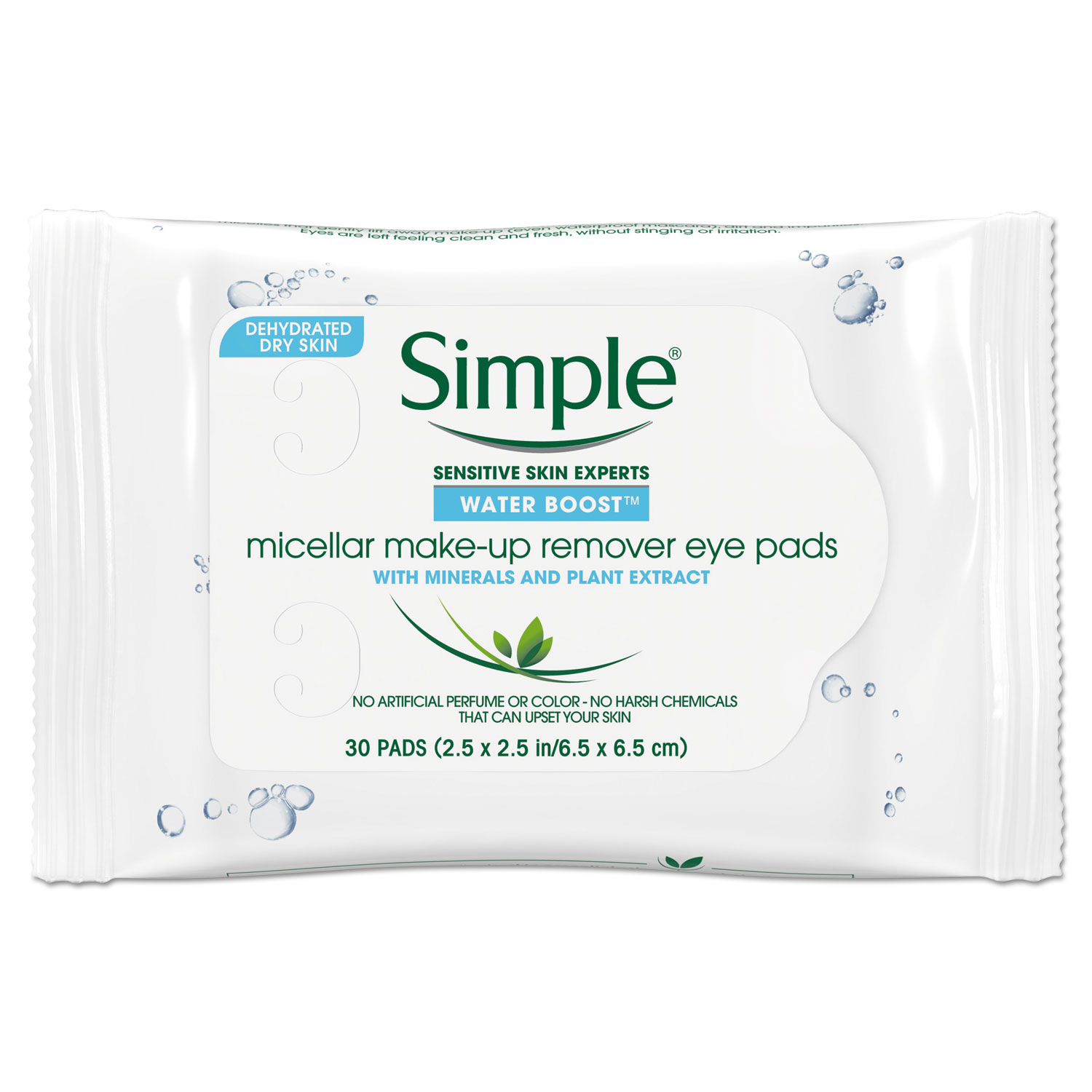 Simple facial skincare products are perfect even for sensitive skin. These products have no dyes, artificial perfumes or harsh irritants that can upset skin. Contains skin-loving ingredients and added vitamins for natural, healthy-looking skin. Simple products are hypoallergenic, non-comedogenic and pH balanced. Eye Make-Up Remover Pads. Towel/Wipe Type: Eye Make-Up Remover Pad; Application: Removing Eye Make-Up; Applicable Material: Skin; Chemical Compound: Minerals; Plant Extracts.