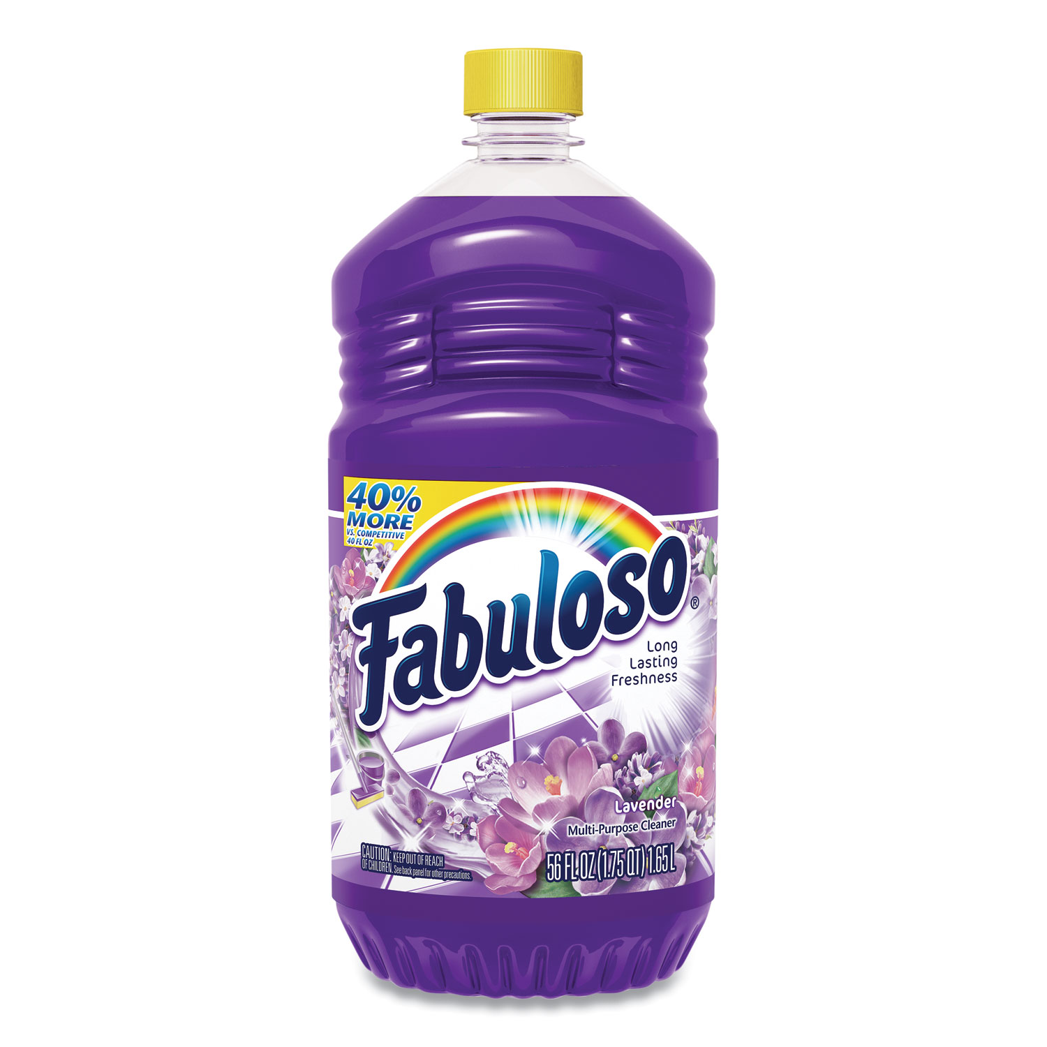 Fabuloso All-Purpose Cleaner - Liquid - 56 fl oz (1.8 quart) - Lavender Scent - 1 Each| Fabuloso All Purpose Cleaner leaves a fresh scent that lasts. The lavender fragrance leaves an irresistible scent your family and guests will notice. It comes in a convenient, easy-pour bottle. This Fabuloso cleaner is easy to use so no need to rinse. It leaves no visible residue. Discover the long-lasting freshness of Fabuloso All Purpose Cleaner that leaves your home shiny, clean, fresh and fragrant.Fabuloso All Purpose Cleaner leaves a fresh scent that lasts. The lavender fragrance leaves an irresistible scent your family and guests will notice. It comes in a convenient, easy-pour bottle. This Fabuloso cleaner is easy to use so no need to rinse. It leaves no visible residue. Discover the long-lasting freshness of Fabuloso All Purpose Cleaner that leaves your home shiny, clean, fresh and fragrant.