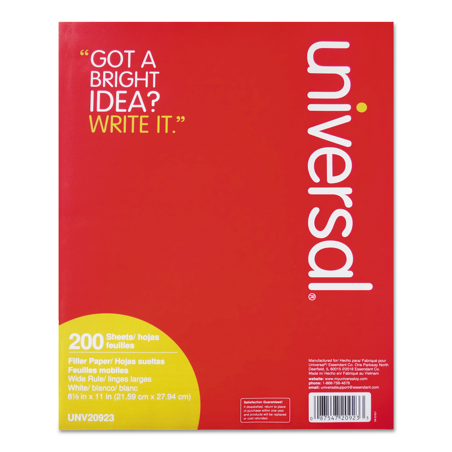 Three-hole punched for use in standard three-ring binders. Lightly ruled on both sides. Red margin rule.
