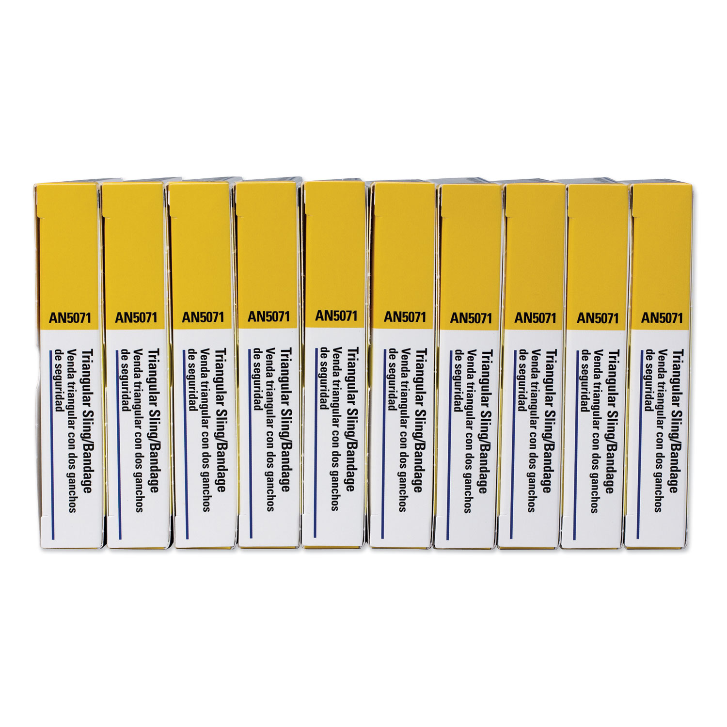 First-Aid refill fabric adhesive bandages. Refill for ANSI-compliant first aid kit. Triangle Size: 40 x 40 x 56 in. Bandages Type: Sling/Tourniquet; Material(s): Muslin; Number of Pieces: 10.