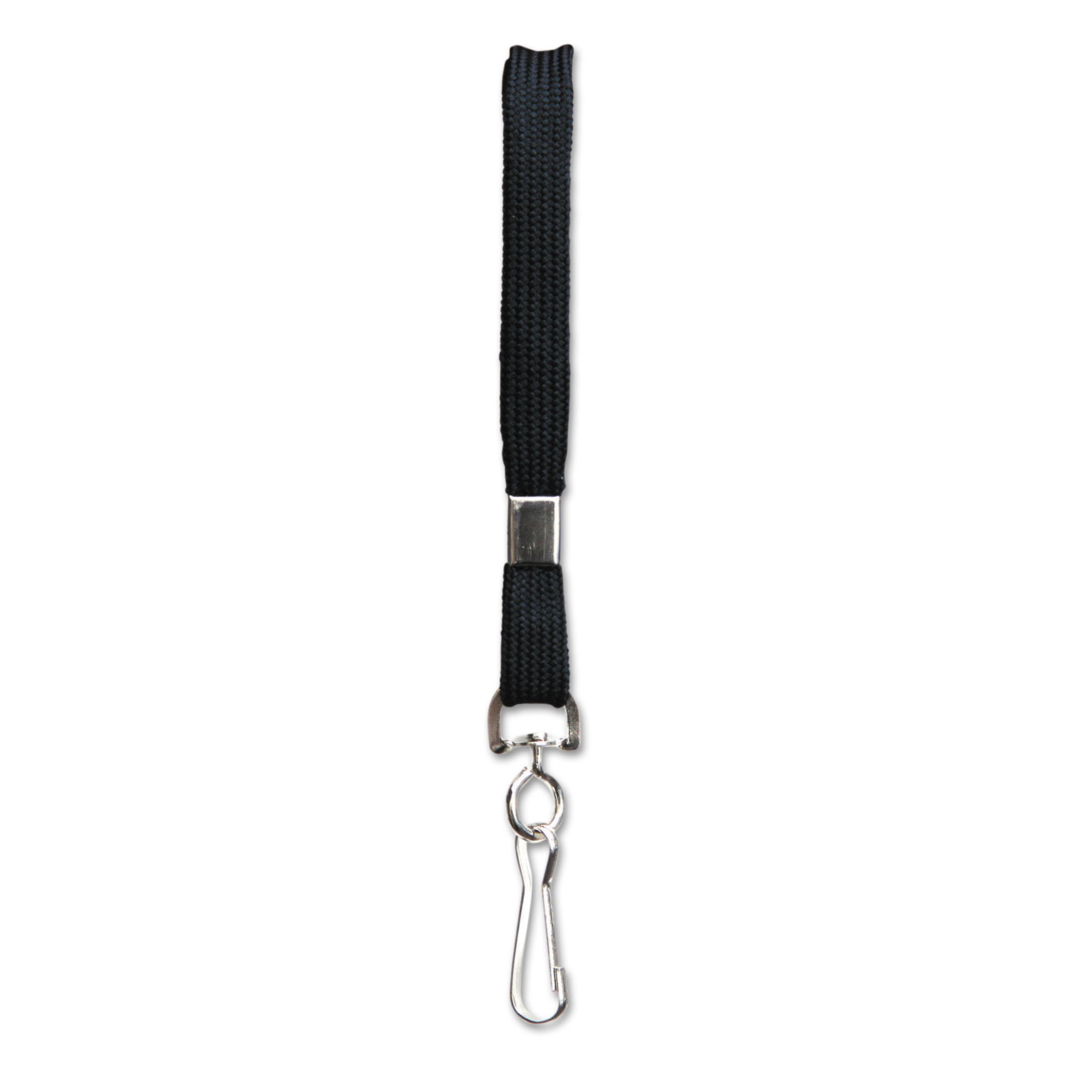Look stylish with this flat, woven style lanyard made of sturdy, low-friction nylon. Durable lanyard designed for years of use. Great for attaching to your ID card for easy identification. Attach to a whistle for sports and camping activities, or attach to your keys so you can keep them safe. Fastener Style: Hook; Lanyard Color(s): Black; Length: 36"; Safety Breakaway Connector: No.