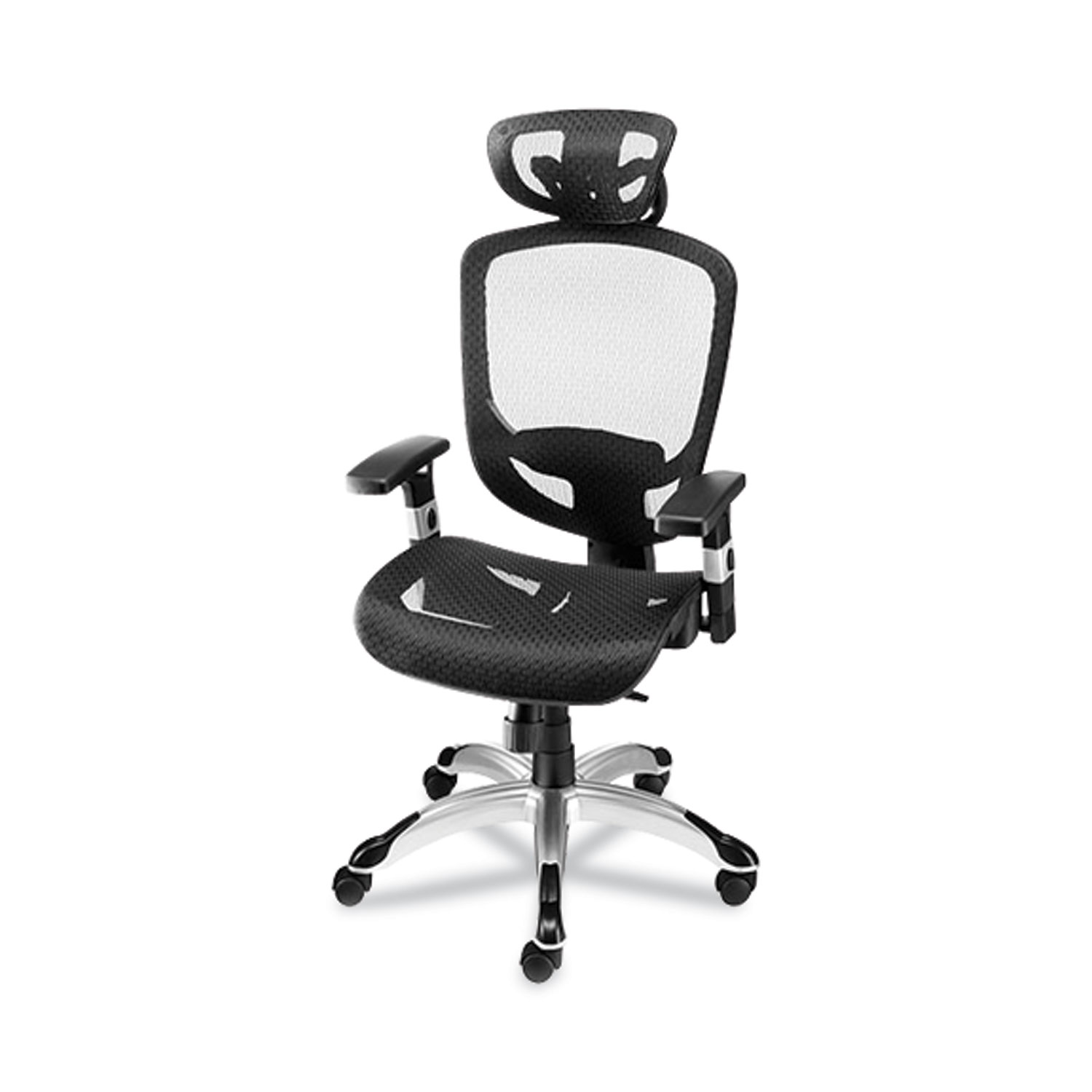 Relax during your mid-morning office break on this task chair. A contoured mesh back channels cool air towards your body for comfort on hot afternoons, while the synchro-tilt automatically adjusts the reclining resistance. The armrests have an adjustable height to deliver customized support, and the integrated lumbar curves along your back, helping you maintain proper posture. Featuring a waterfall padded seat, this chair cushions to prevent fatigue on long workdays. This task chair has a four-in-one control for adjusting the seat height, controlling the slider and locking the back in your favorite position for personalized comfort. Recommended Application Area(s): General Office & Task; Seat Color: Black; Back Color: Black; Color Family: Black.