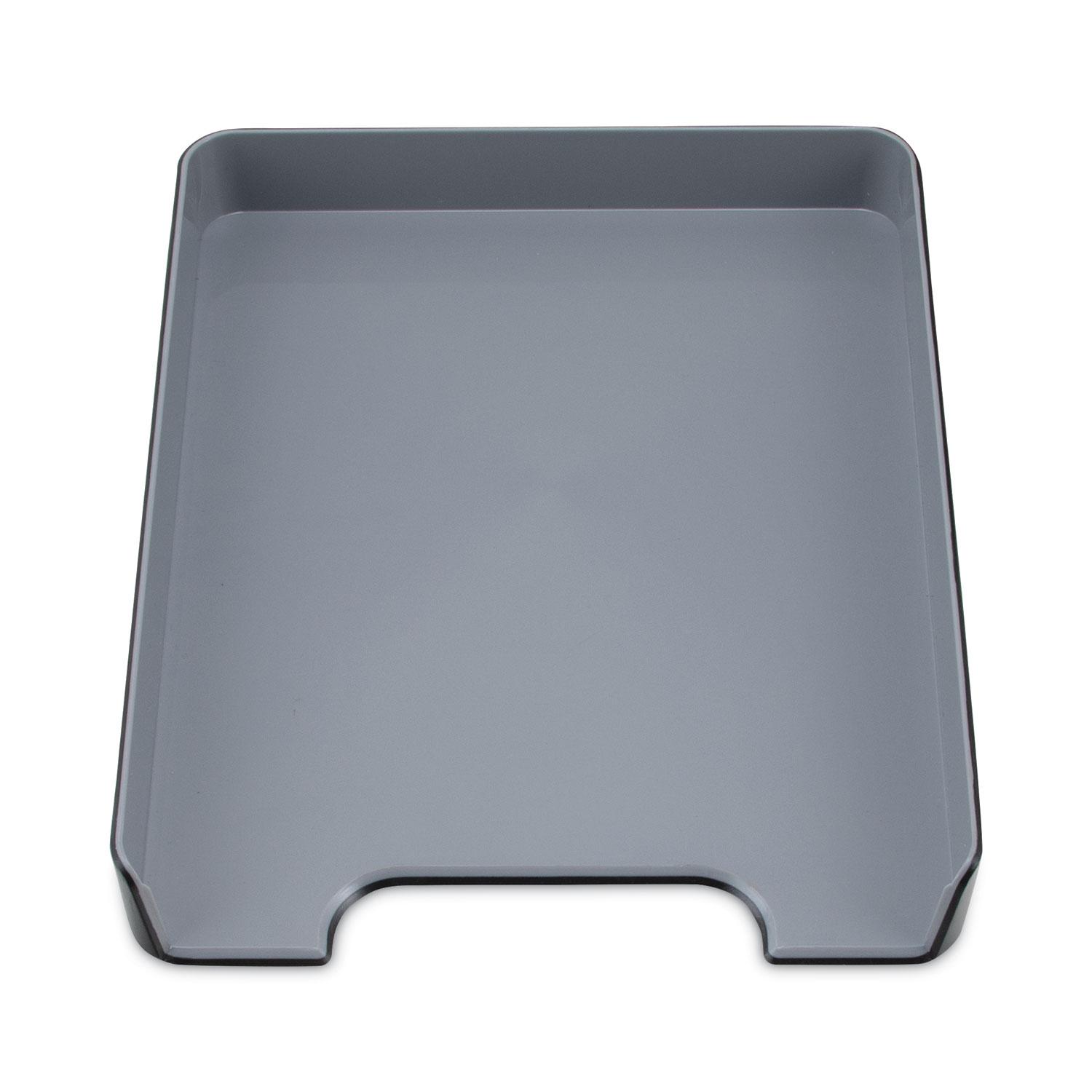The essential desk tray organizer for paper, notebooks, magazines, craft paper, notes, binders, and more. The Fusion Paper Tray can hold about 400 sheets of regular thickness paper without spilling over. Perfectly sized to fit regular letter or A4-sized paper. Store on desktops, countertops, or shelves to maximize space to organize a workspace, home office, or classroom. The minimalist color schemes are perfect for any modern office or home dcor. Number of Compartments: 1; For File Size: Letter; Load Orientation: Front; Color(s): Black.