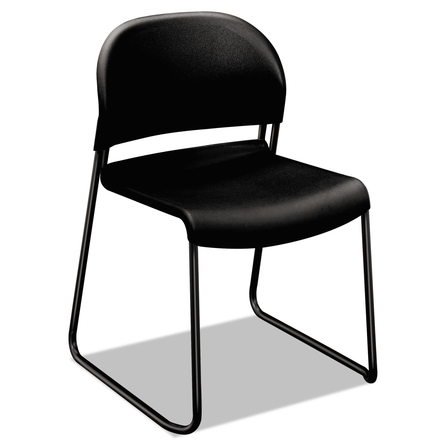 Molded to fit body. Waterfall edge maximizes leg support. Lumbar support reduces back fatigue. Button glides help protect flooring. Wallsaver design allows chair clearance when frame rests against baseboard. Recommended Applications: Breakroom & Hospitality; Seat Color: Onyx; Back Color: Onyx; Color Family: Black.