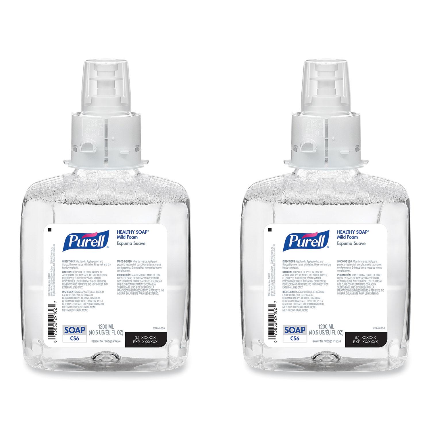 Show you care about well-being with PURELL Brand HEALTHY SOAP Mild Foam. The luxurious foam soap is exceptionally mild for a gentle hand cleaning experience. Plus, it nourishes as it cleanses, thanks to moisturizers that support your skins natural ability to protect itself against dirt and germs. Its also dye-free, hypoallergenic, and fragrance-free. For Use With PURELL CS6 Soap Dispensers. Soap Type: Foam; Application: Hand; Capacity (Volume): 1,200 mL; Scent: Fragrance-Free.