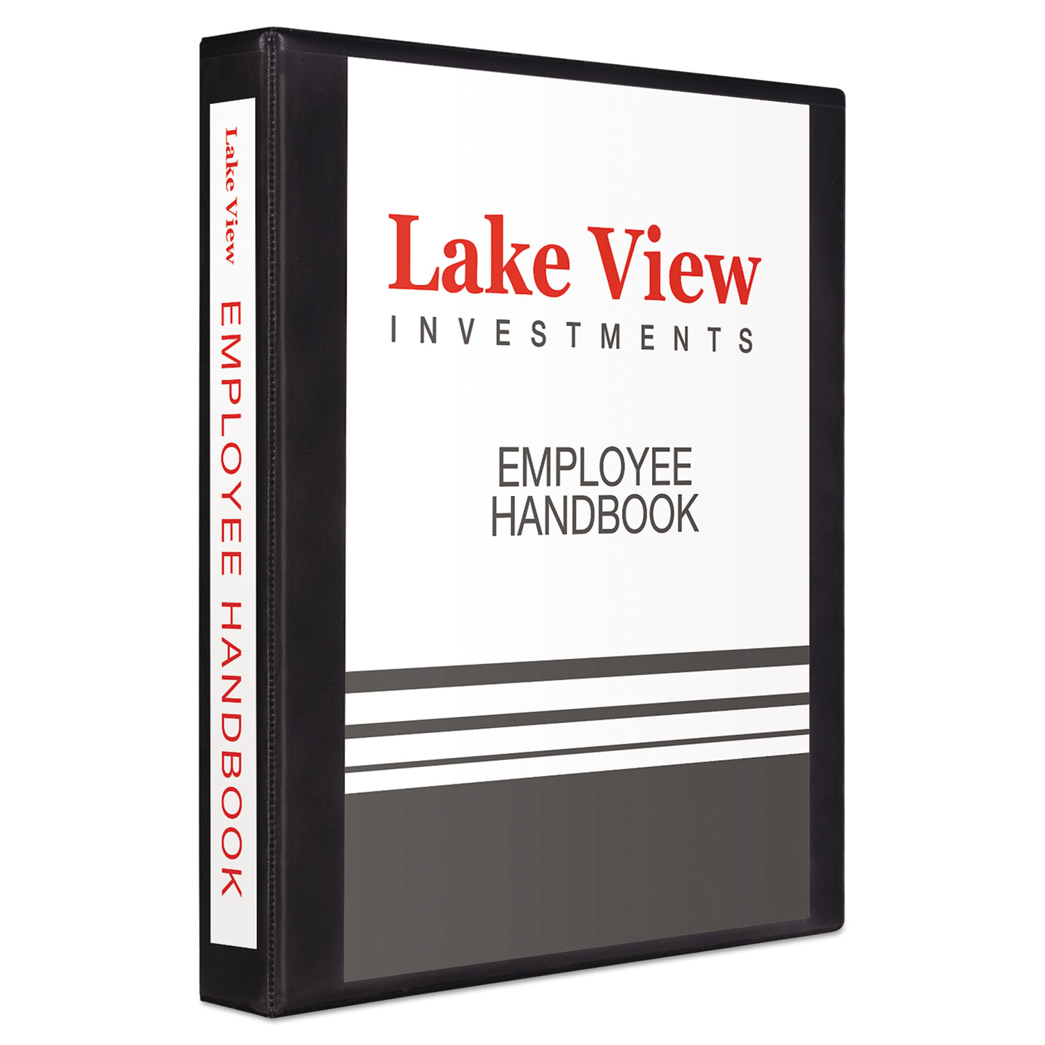 Heavy-Duty view binder with one touch EZD rings is perfect for long-term, regular use. Tear-resistant DuraHinge design is stronger and lasts longer. DuraEdge feature makes the sides and top more pliable, providing greater split resistance. Deep-textured film offers a smoother finish and features a linen pattern for a high-quality look and feel. Clear cover and spine for easy customization. Four clear, interior pockets provide extra storage space. Wider front and back panels fully cover standard dividers and sheet protectors. One touch EZD rings provide easy access and have a higher page capacity when compared to the same size round rings. Customize the cover with free, easy-to-use templates and designs at Avery Design & Print online. Binder Type: Ring; Binder Style: View; Binder Size Capacity: 1"; Binder Sheet Capacity: 275.