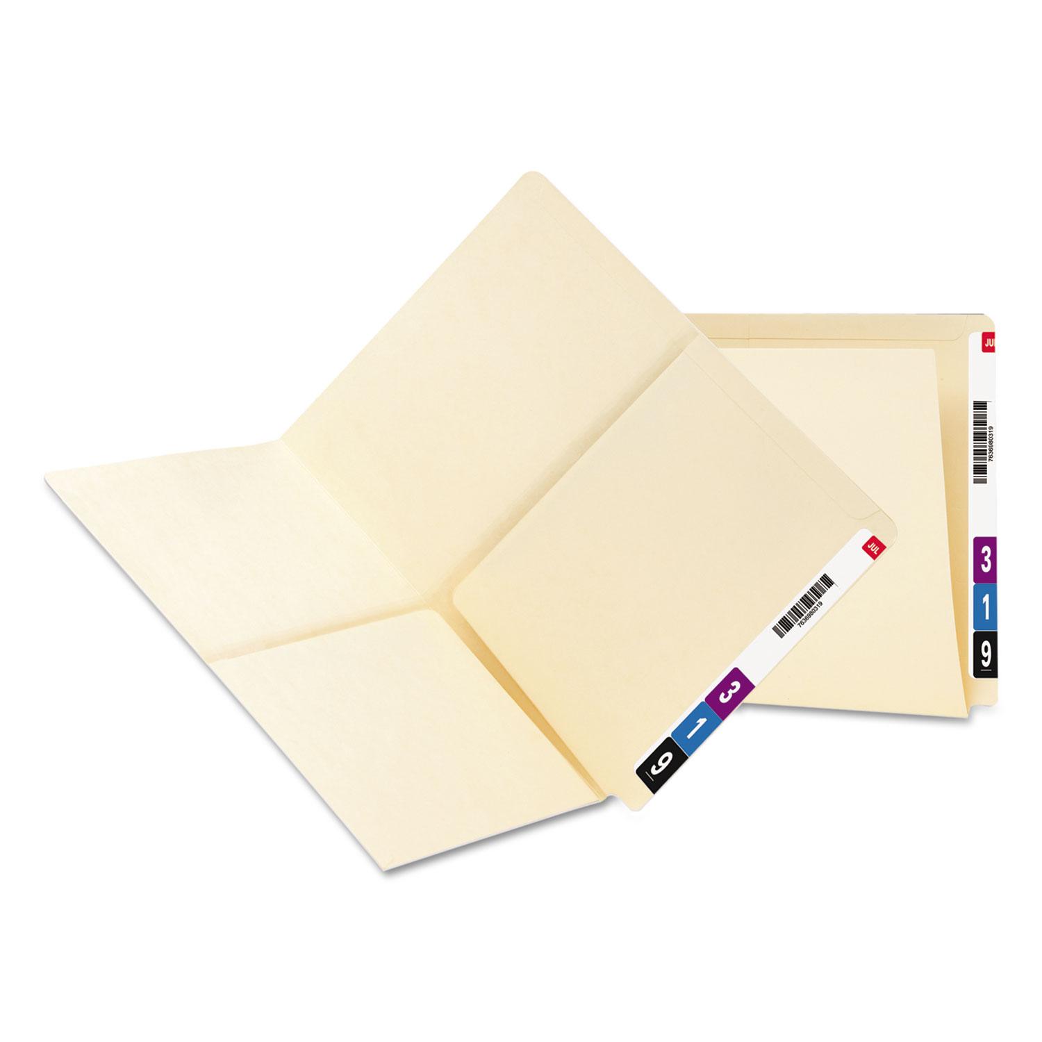 One or two handy pockets on the inside safely hold small or loose materials such as X-rays or photos. Pockets open on the top and inside edges for easy filing and are sealed on the outer edges. The industry standard for efficient shelf filing. This folders feature a double-thick tab for strength and durability. Interior Front and Back Panel Pockets. File Folder Size Type: Letter; File Folder Color: Manila; Color Family: Manila; File Folder Material: 11-pt Manila.