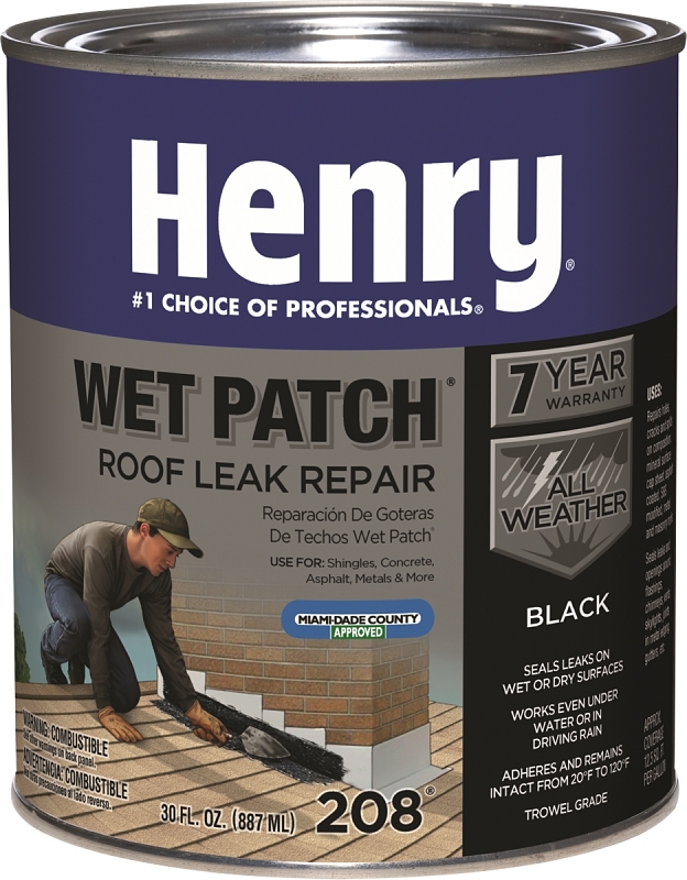 Henry 208 Wet Patch roof leak repair stops leaks instantly on wet or dry surfaces - even in driving rain.