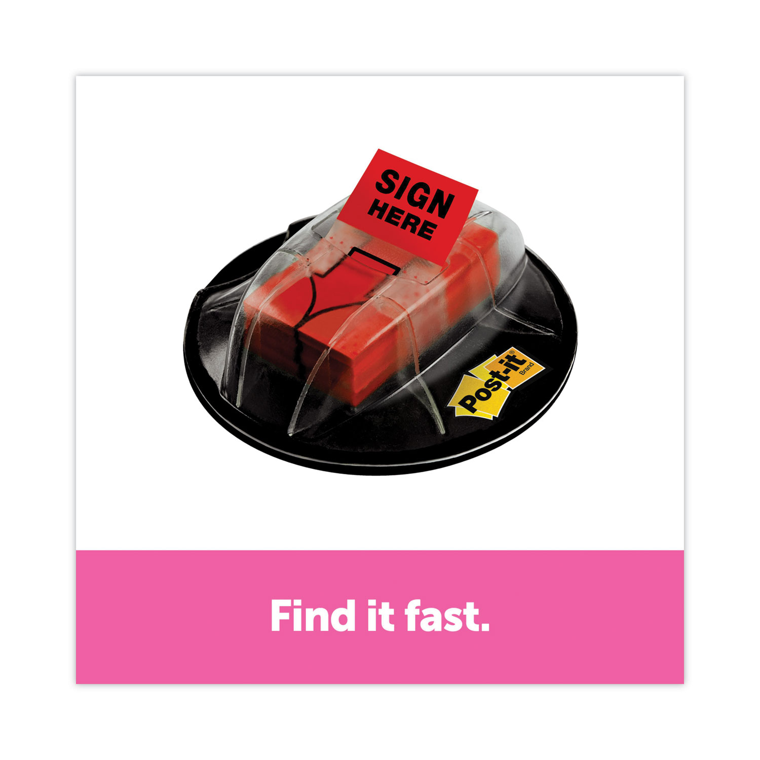 Post-it Arrow Flags are great for indicating exactly what you want done. They stick securely and remove cleanly without damaging documents. Included Desk Grip Dispenser holds four times more flags than standard dispensers, ensuring that you always have flags on hand. Color(s): Red; Color Family: Red; Message(s): SIGN HERE; Dispenser: Pop-Up.