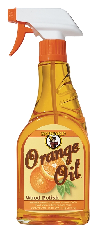 Use Howard Orange oil wood polish to dust, polish and condition all wood surfaces including kitchen cabinets, tables, chairs, desks, paneling and antiques. Orange oil will help keep your wood from drying out while restoring depth of grain and natural beauty to the wood. It's easy-to-use and excellent for polishing, conditioning and nourishing all wood surfaces. Howard Orange oil wood polish has been using the polishing power of real orange oil to gently clean and polish wood finishes for over 35 years. Orange essence oils are derived from the rind of the fruit and have excellent cleaning and polishing properties. These special oils, blended with a highly refined mineral oil, enhance the depth and bring out the natural beauty of the wood grain. Howard Orange oil can be used on all wood surfaces including antiques, furniture and kitchen cabinets without drying the wood finish like many other wood cleaners. Does not contain silicone or linseed oil.