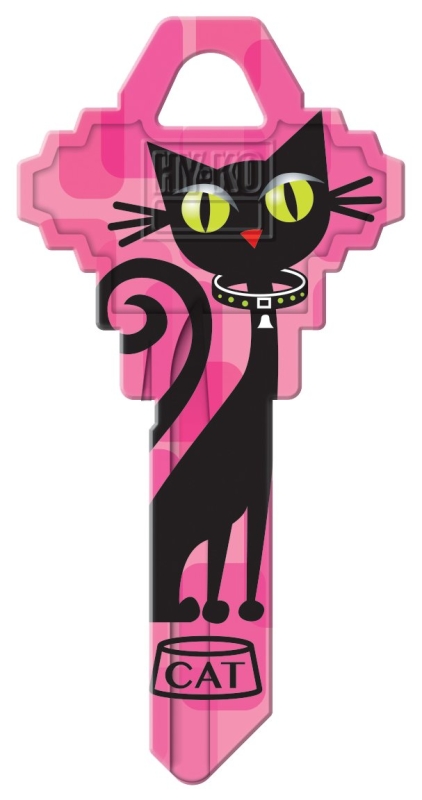 HY-KO Key Blank, Design/Theme: Cat, Brass, Dimensions: 1.07 in W x 0.09 in D x 2.1 in H, Suitable for: Schlage SC1 Keyways